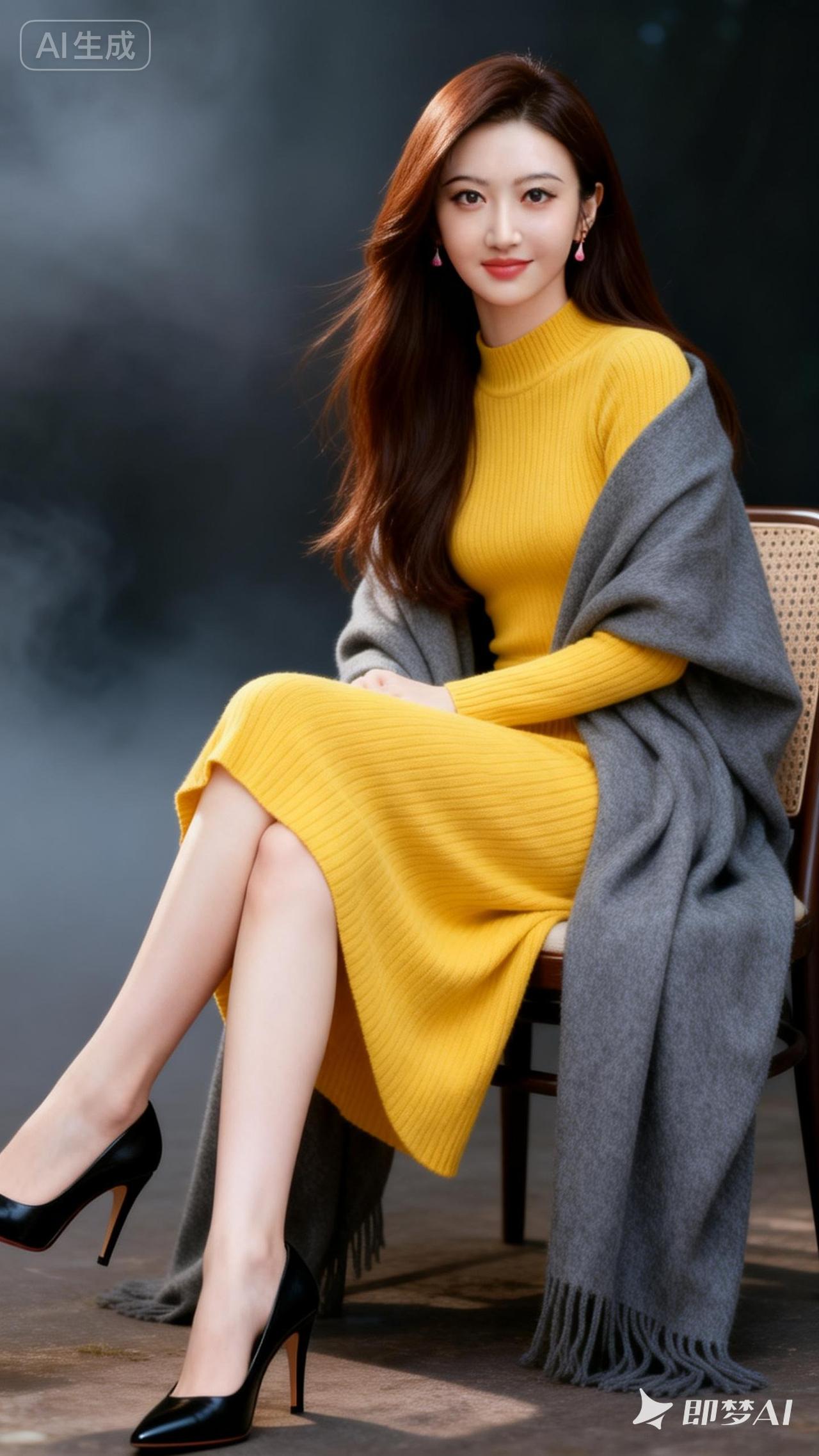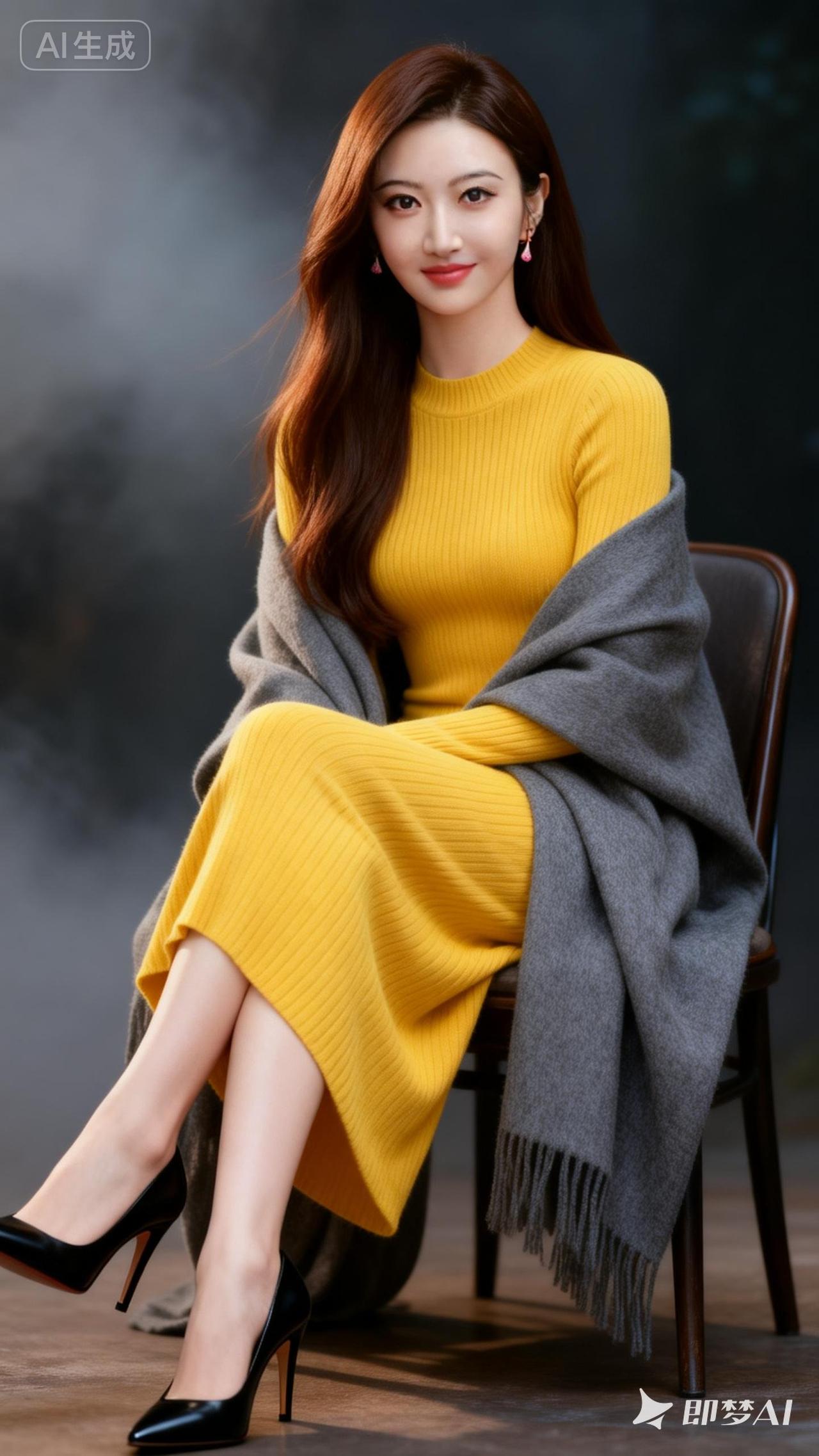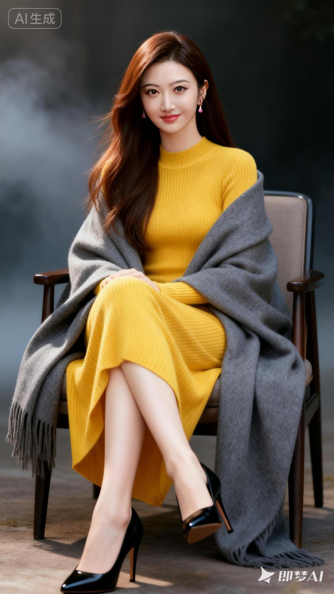 优雅气质穿搭指南,温暖黄色毛衣搭配灰色毛毯,尽显温柔魅力!🌟✨