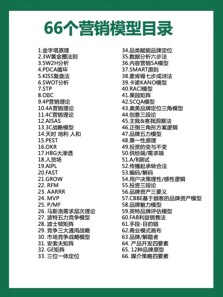 完整版的目录如下,由于篇幅有限,CC 整理了11个部分精华模型分享出来