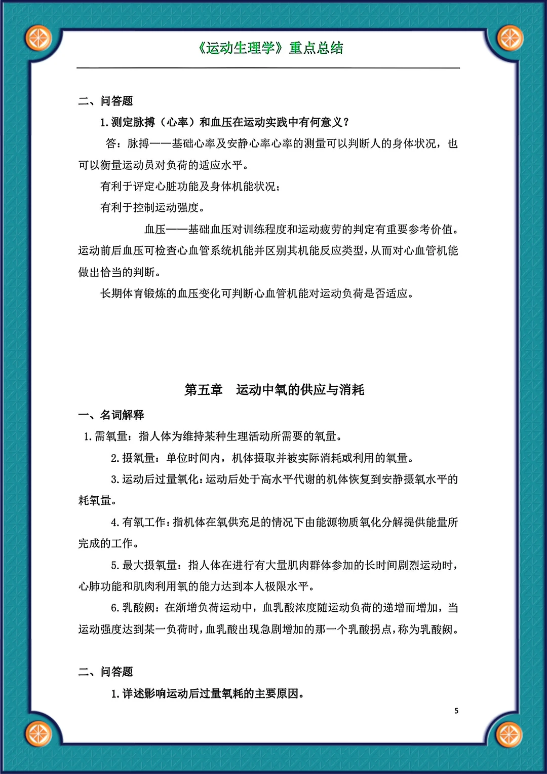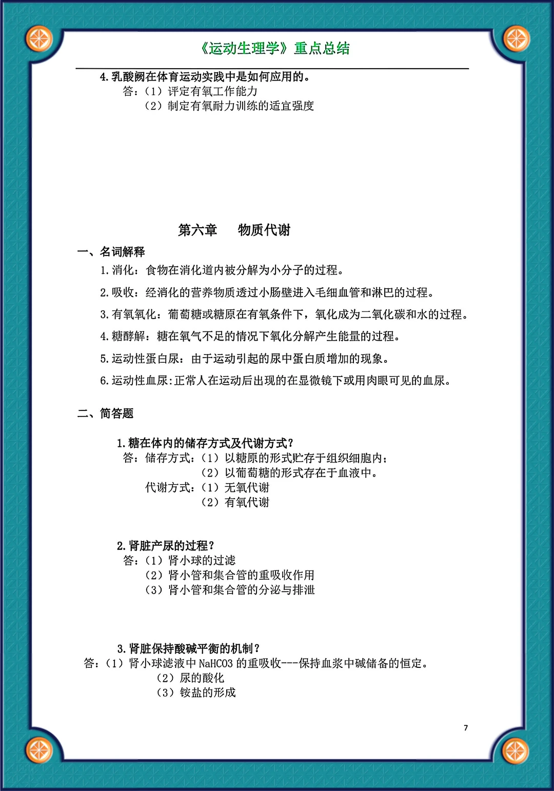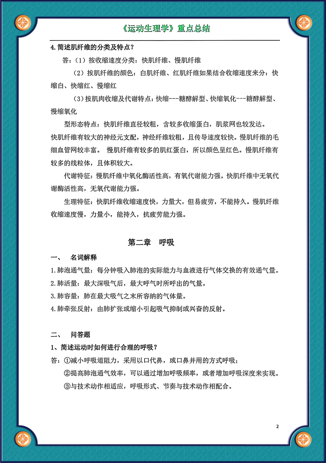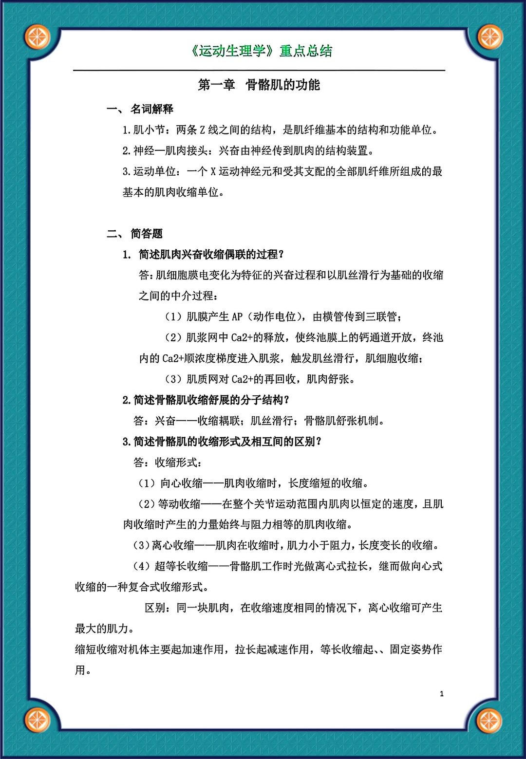 期末运动生理学总结,老师画的考点,大家直接背就可以