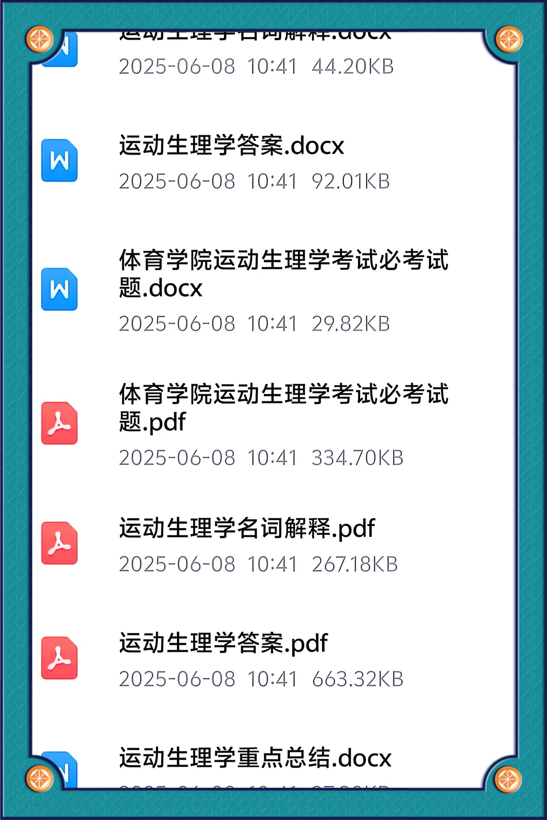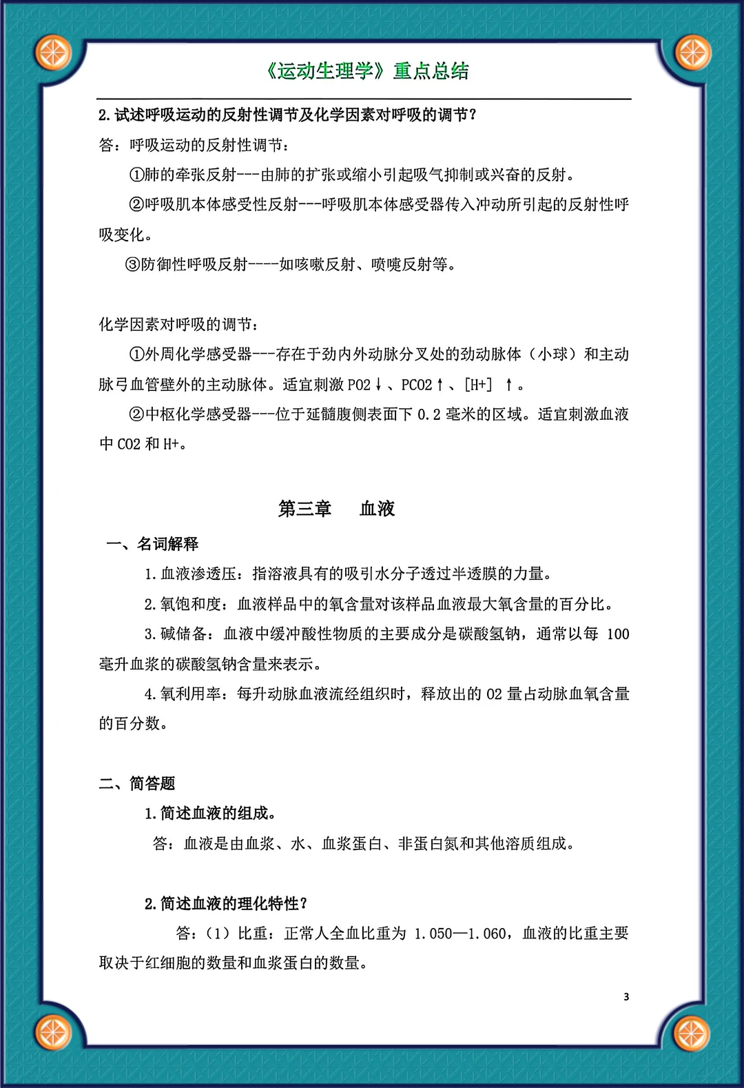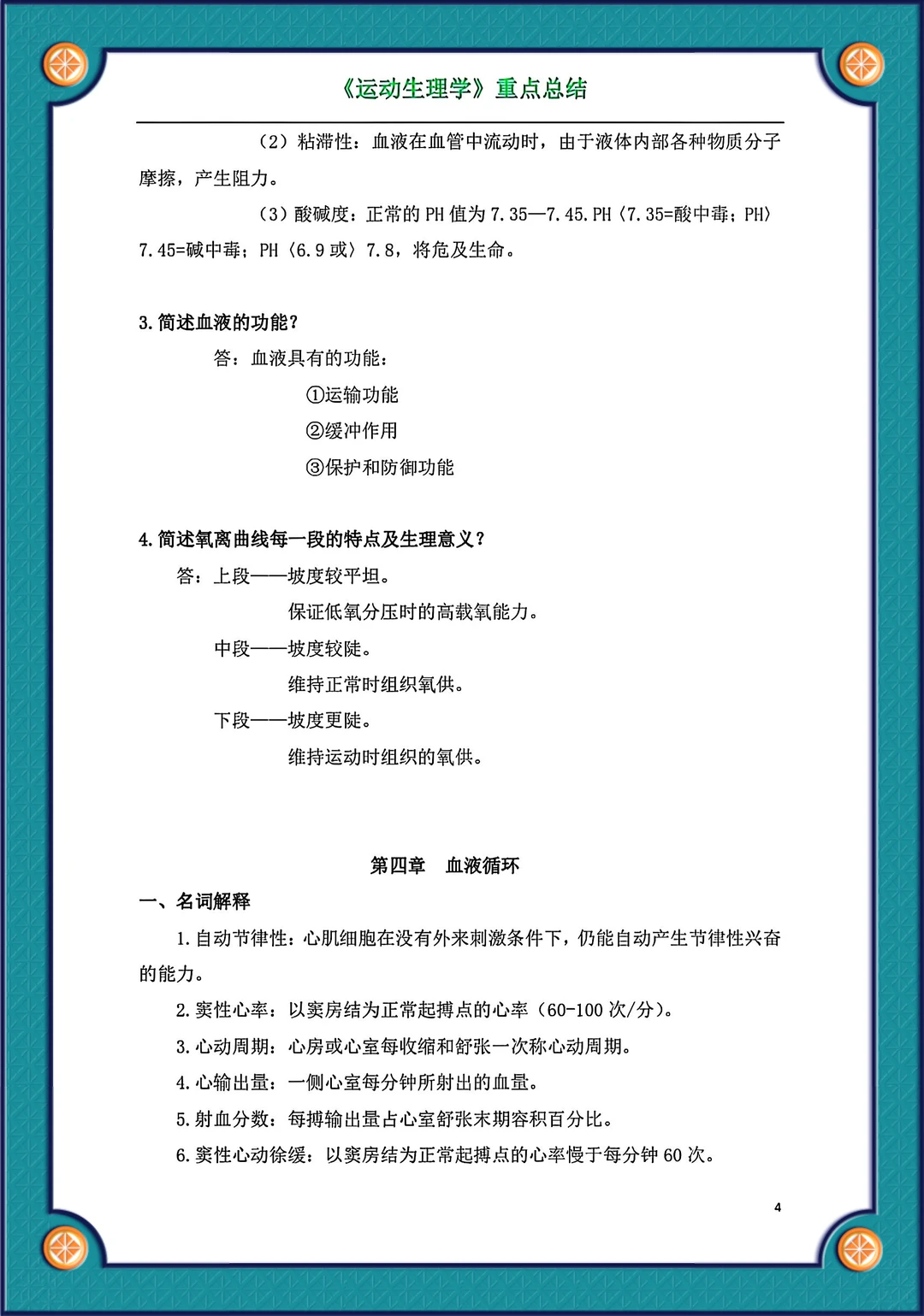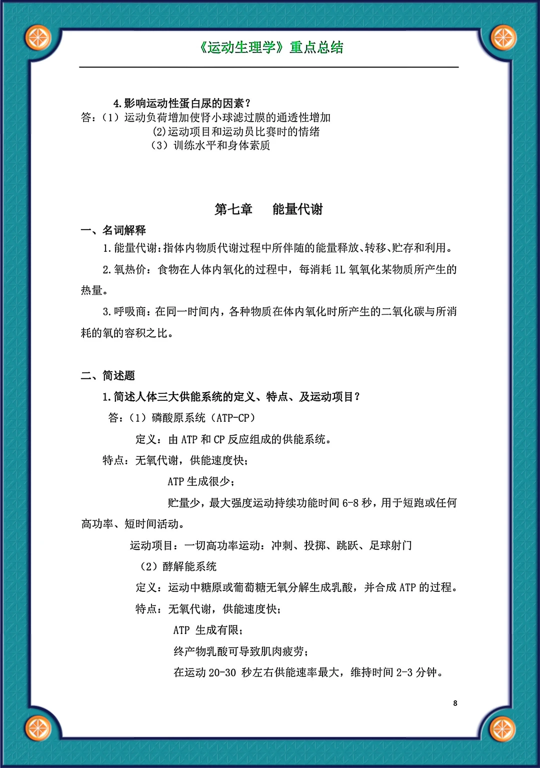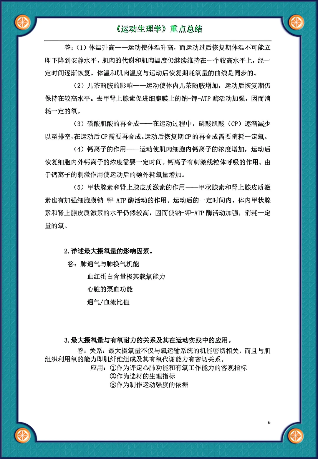 期末运动生理学总结,老师画的考点,大家直接背就可以