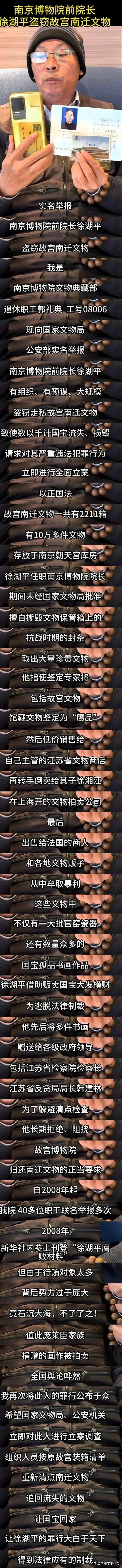 南博案现在什么情况了?南博前院长徐湖平被查,撕开文博系统权力寻租的黑洞。身为国宝守护者,他却构建“鉴定-调拨-变卖”闭环,将庞家无偿捐赠的《江南春》等珍品伪称“赝品”,以6800元贱卖后天价流转,2211箱故宫南迁文物亦遭染指。十七年举报长跑、四十余职工联名举证,暴露的是利益链盘根错节与监管失守。国宝非私产,文脉不容蛀!当以该案为切口,深挖“保护伞”,筑牢文物保护制度防线,让监守自盗者付出沉重代价,告慰捐赠者初心与民众期盼。南博案现在什么情况了?欢迎评论区留言