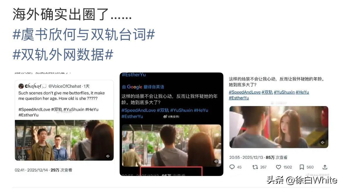12月27日,虞书欣想靠《双轨》翻身失败,唯一的收获,她把何与在海外捧火了! 谁能想到一年前的951,如今成了内娱隐形人,原以为的线下追剧团没有,内娱年底活动也看不到她的身影,她一直都在,又好像离内娱越来越远,关于虞书欣,也有大家对她好奇的点,她到底是无法在内娱正常活动,还是单纯想走出内娱去海外发展? 《双轨》虽不如预期但也算是部热播剧,按道理,此时的她应该在内娱很忙才对……