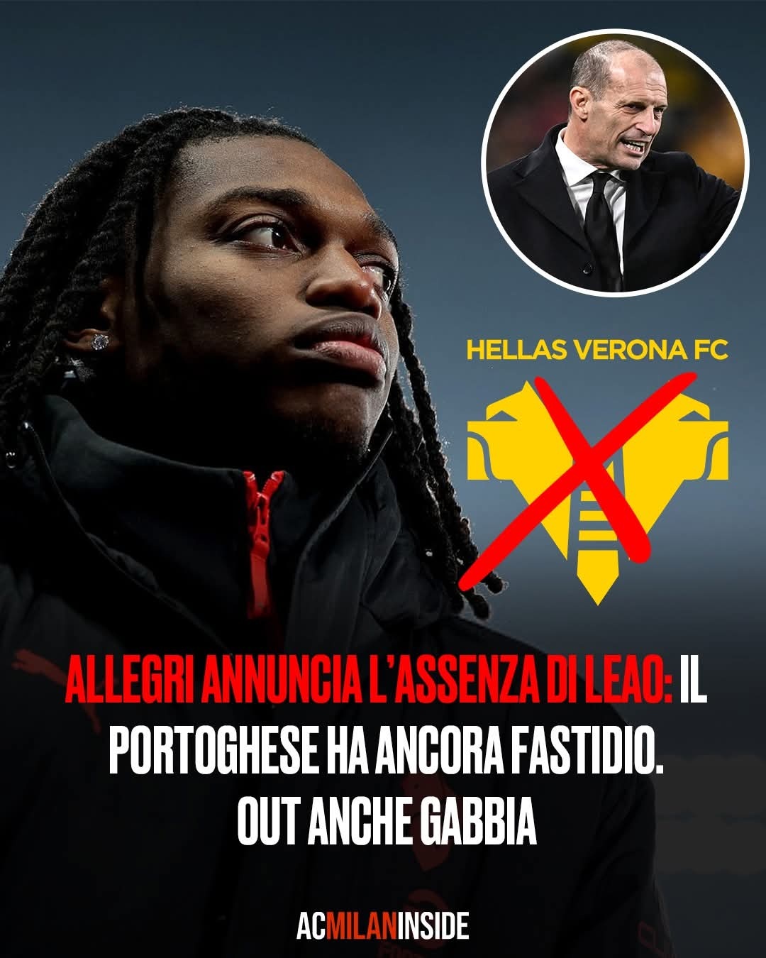 【阿莱格里🇮🇹教练】 🎙️“拉斐尔·莱奥🇵🇹依然受到伤病的影响,无法正常发挥他的速度优势,所以我决定继续让他留在家中休整。”❌sempremilan