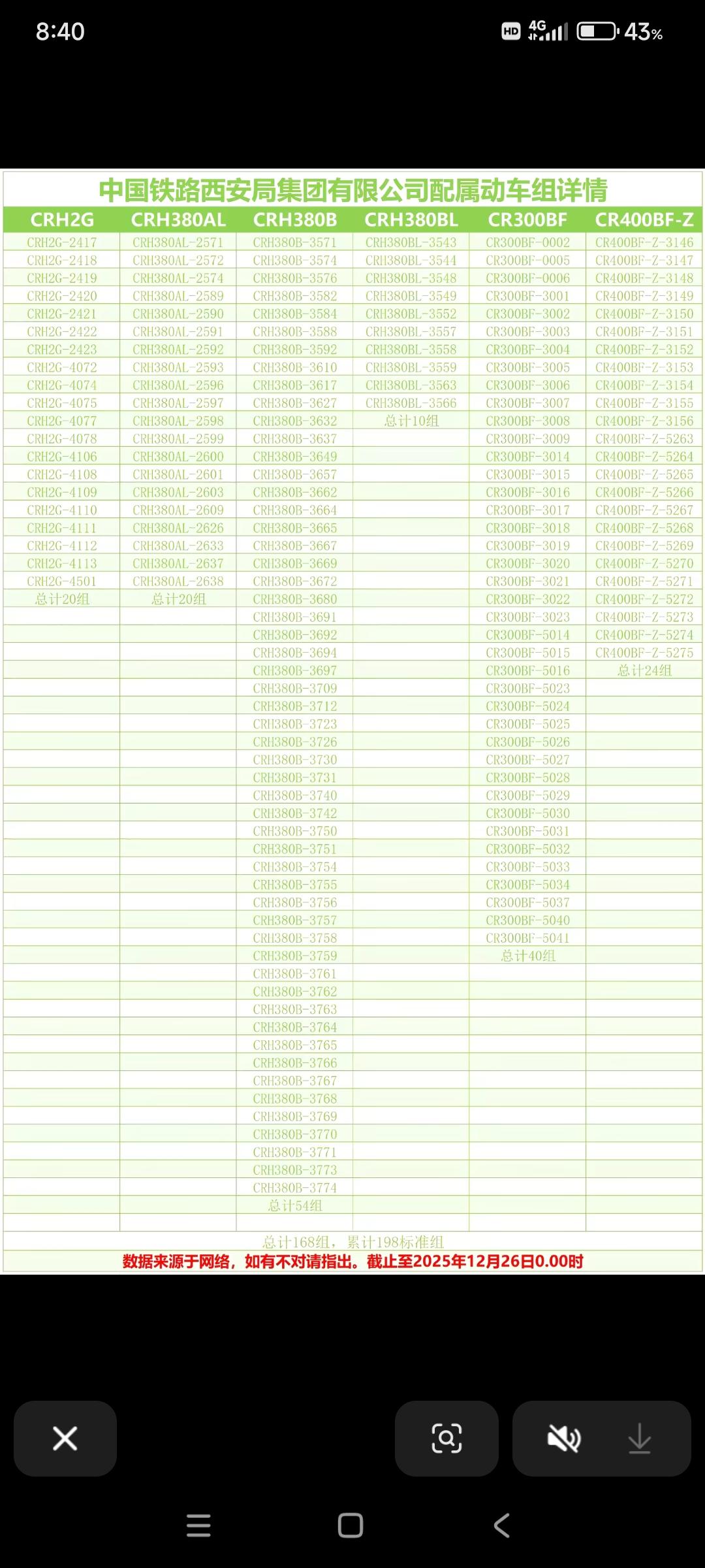 截止到年底,西局共配属动车168组,但CR400系列只有24组且全部为8节编组,所占比例仅为14.3%,复兴号高速列车确实有些少,导致进京进沪标杆外局担当,明年西武,西康开通,应该会配属一批新车吧高铁