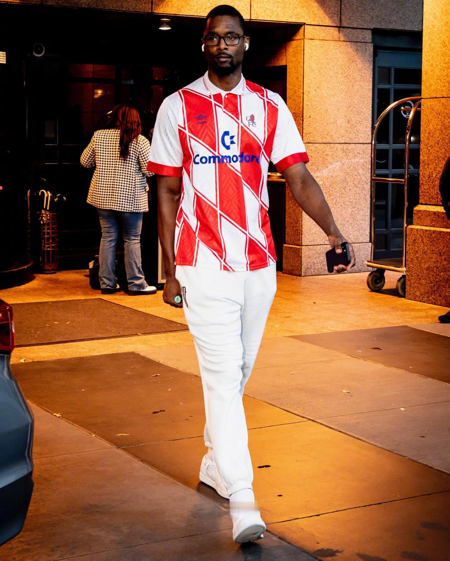看哈里森-巴恩斯的社媒,感觉他这两年很关注足球,特别是球衣。这赛季的入场穿搭穿了不少复古球衣,到处跑也获赠了不少球衣。
