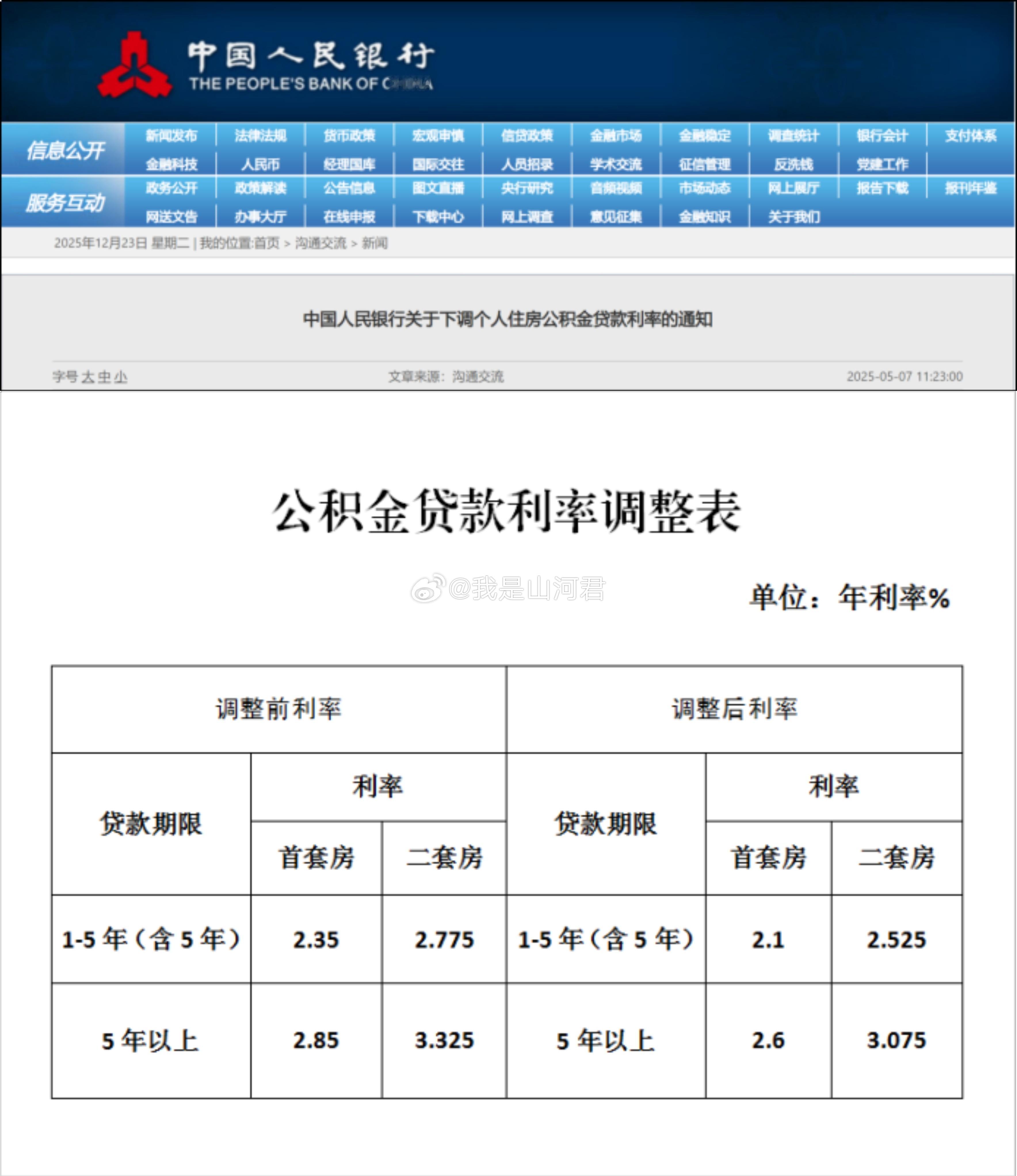 公积金贷款利率调整表【明年1月1日起,公积金贷款利率正式下调】根据2025年5
