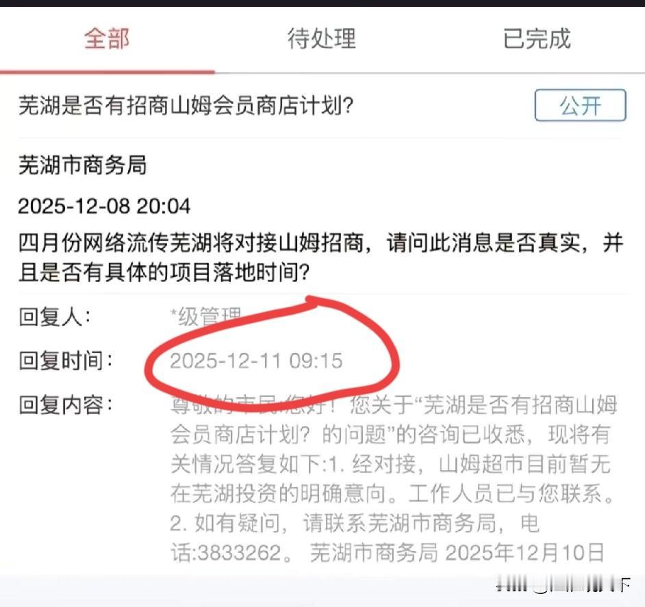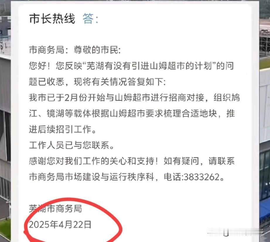 芜湖山姆超市开店计划搁浅,暂时没有投资意向 今年4月份,有芜湖市民向市长热线咨询