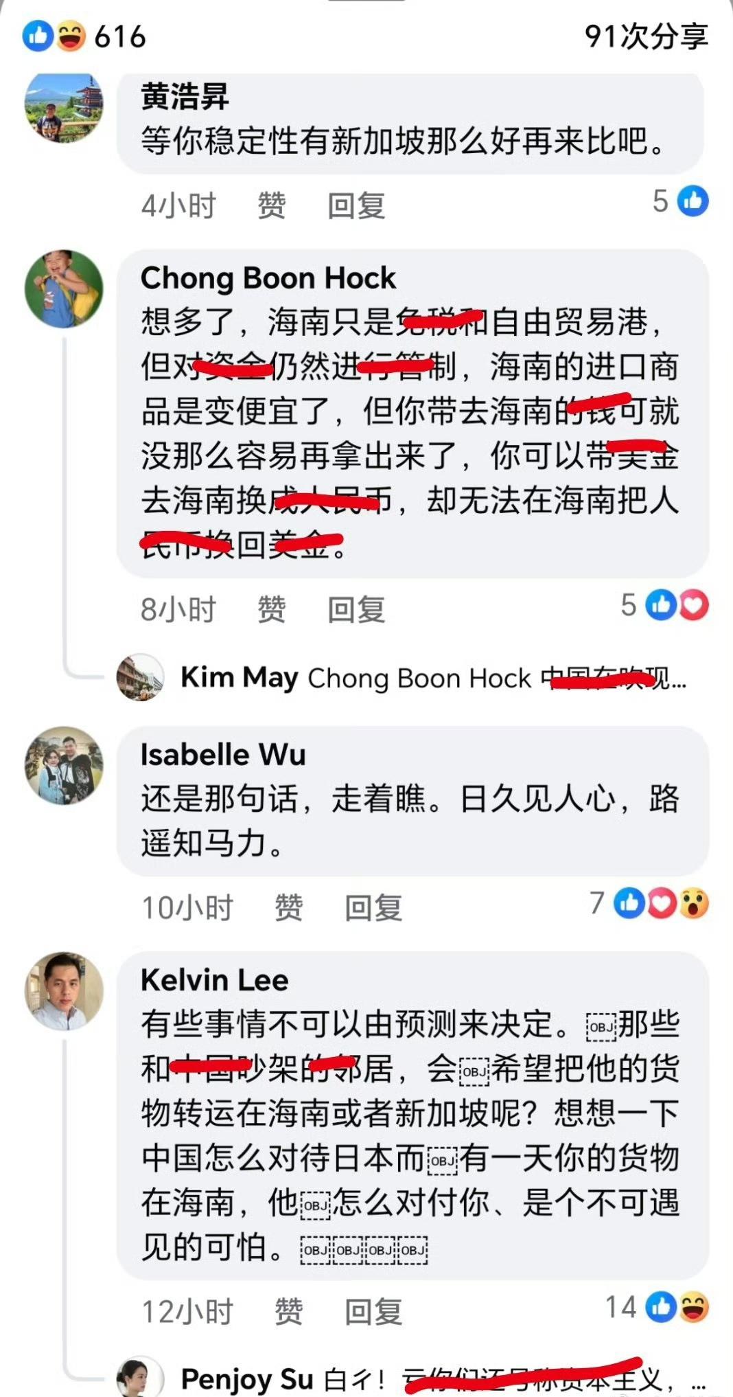 海南岛封关,看看新加坡人的评论,情绪不小啊!大家就理解理解,一笑置之吧!