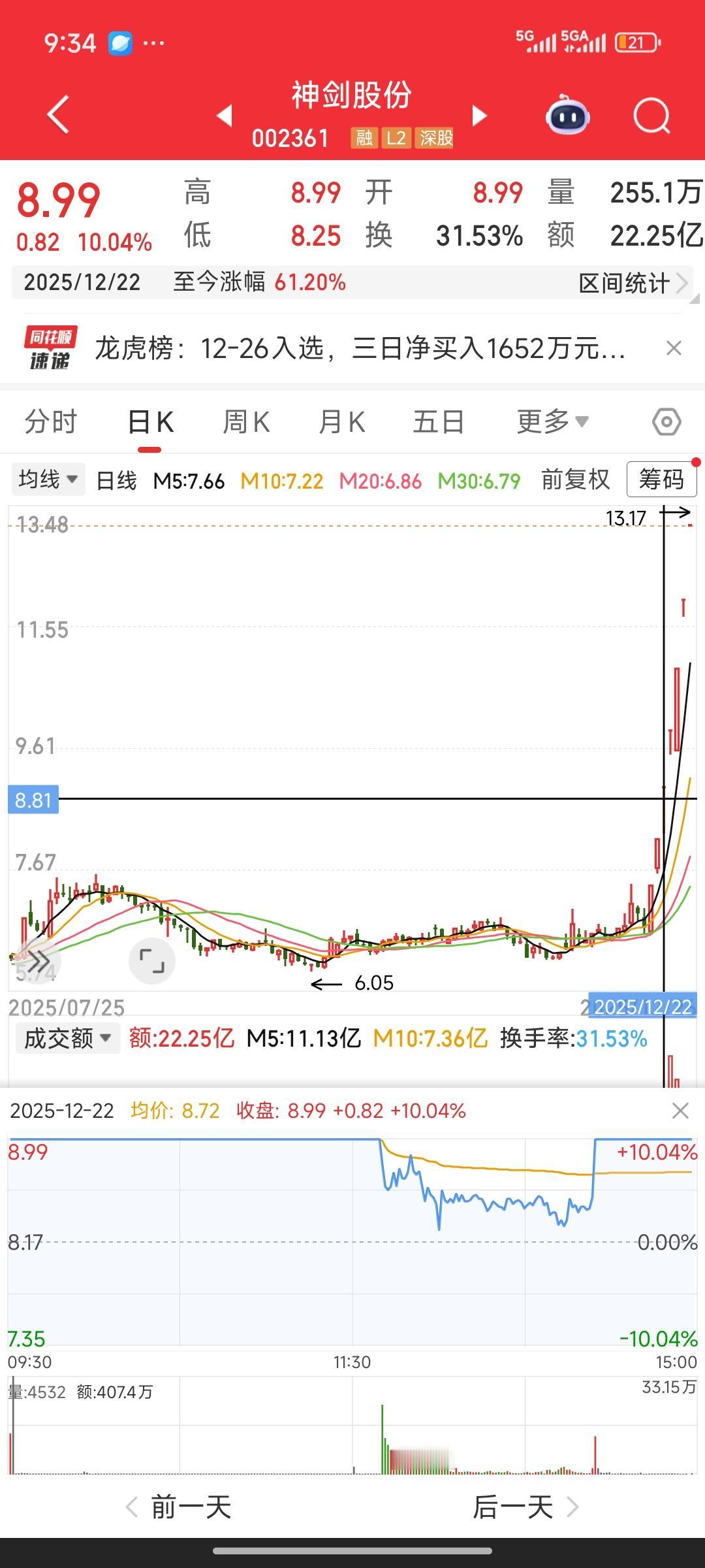第二个涨停参与了,第三个涨停当天下午开盘下杀到5个点洗盘被吓跑,之后就赶不上节奏了,被摔的远远的,韭菜命!