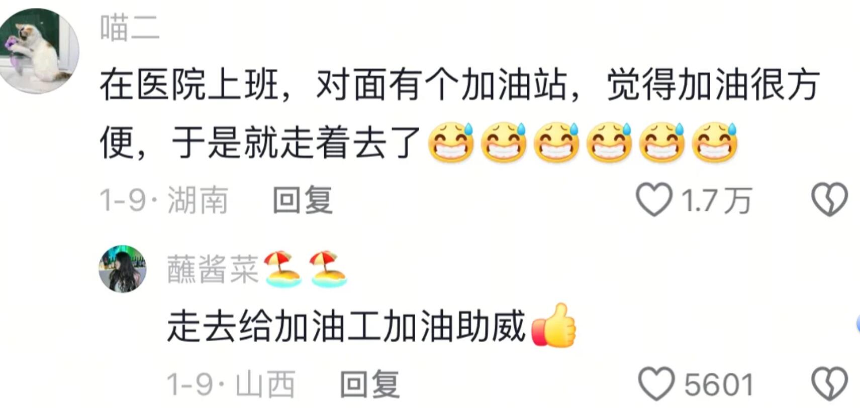 在医院上班,对面有个加油站,觉得加油很方便,于是就走着去了