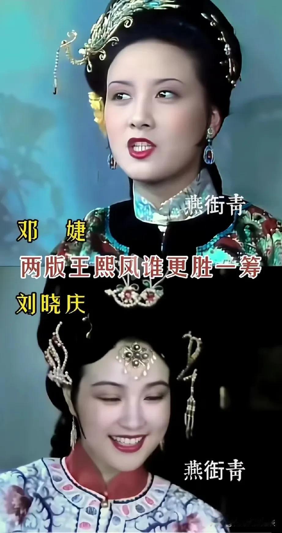 你认为87版的电视剧的王熙凤和89版电影的王熙凤谁更胜一筹。有人说刘版演的不错,处处模仿87版,但是邓婕版简直就是王熙凤本尊附体,一个是演,一个就是本尊,能比吗? 邓婕更胜一筹,首先她的眼神透着高傲,霸气。狡猾精明,見什么人,说什么话的媚态,把人格表现得淋漓尽致…… 刘晓庆版不够自然,有点做作。两个版本不可同日而语。这不是哪几个人说的,是千千万万大众眼光得出来的结论。