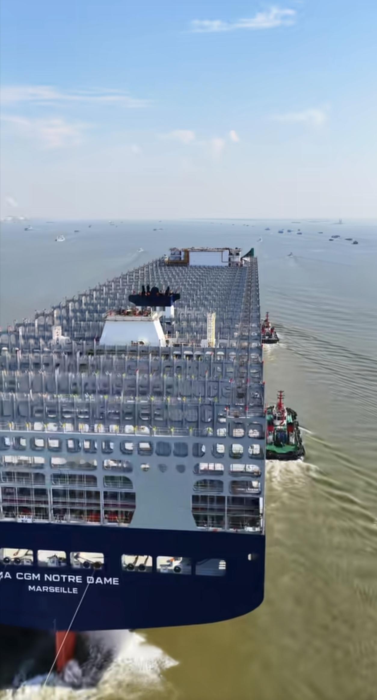 当那道钢铁脊梁刺破晨雾的刹那,整个港口都屏住了呼吸。 长400米,宽61米,高61米——这组冰冷的数字,在朝阳的鎏金光芒里,幻化成一尊横亘天地的巨兽。它的身躯,比4个标准足球场还要壮阔,站在船舷下仰望,人类的身影渺小如蝼蚁,连呼啸的海风都在此处折戟,只能贴着钢铁的肌肤,发出低沉的呜咽。 船头劈开碧波的瞬间,是雷霆万钧的震撼。不是惊涛骇浪的咆哮,而是万吨钢铁与海水的博弈,是人类工业文明的极致宣言。61米高的船身,半截探出水面,半截扎根深蓝,像一座移动的钢铁岛屿,带着2万多个集装箱的重量,稳稳地犁开海面。白色的浪涛在船舷两侧炸裂,而后又被巨轮的尾流吞噬,留下一道宽阔如银河的水痕,在海平面上蜿蜒向远方。 这不是一艘船,这是一座驰骋海洋的城邦。 它的每一寸钢板,都镌刻着人类的野心与智慧。400米的长度,是工程师们在图纸上反复丈量的极限;61米的宽与高,是力学与美学的完美共生。当它鸣响汽笛,那声浪穿透云层,惊飞了盘旋的鸥鸟,也让岸边的观望着心潮澎湃——这是属于海洋的史诗,是钢铁与碧波的对话,是人类文明驶向深蓝的铿锵足音。 巨轮渐远,最终化作海平面上的一个黑点。但那道划破晨雾的钢铁轮廓,那声震撼心灵的汽笛,却永远定格在海天之间,昭告着:人类的征途,从来不止于陆地。