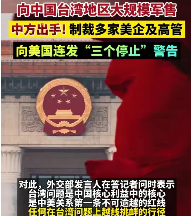 中方对涉台軍售姜企采取必要措施,美方回应措辞明显降调。 中方对涉台军售的美企采取
