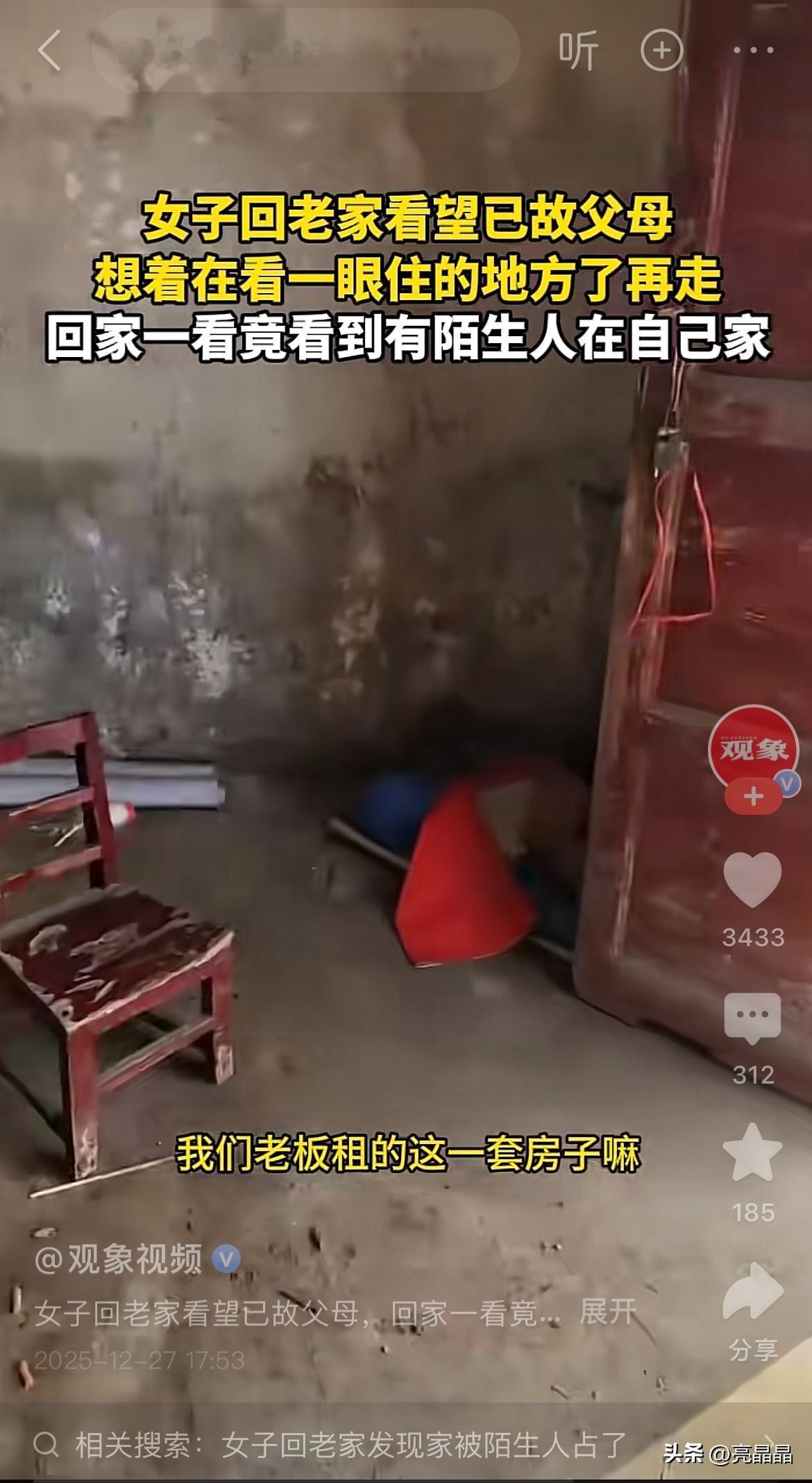 太心酸了!父母双亡,在外漂泊多年,女子想回老家看看,没想到一进门发现家被陌生人鸠