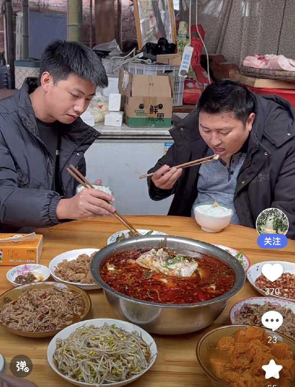 农村四哥盖大别墅,英子穿着一身绿色衣服在人群之中吃饭。回来吃四哥煮的10斤大鱼,力破四哥与英子传闻。因为老有人在英子直播间问英子:和四哥离了没? 英子有时候会回复:去看视频哈! 四哥的手艺还是那么好,看着水煮鱼流口水! 英子难得回来几次,要站着吃多两块鱼[呲牙][呲牙]! 等以后过上别墅种菜的生活也是幸福的! 人生有期待![赞][赞]四哥,牛啊! 英子 英子自媒体 农村人英子 英子直播间畅聊