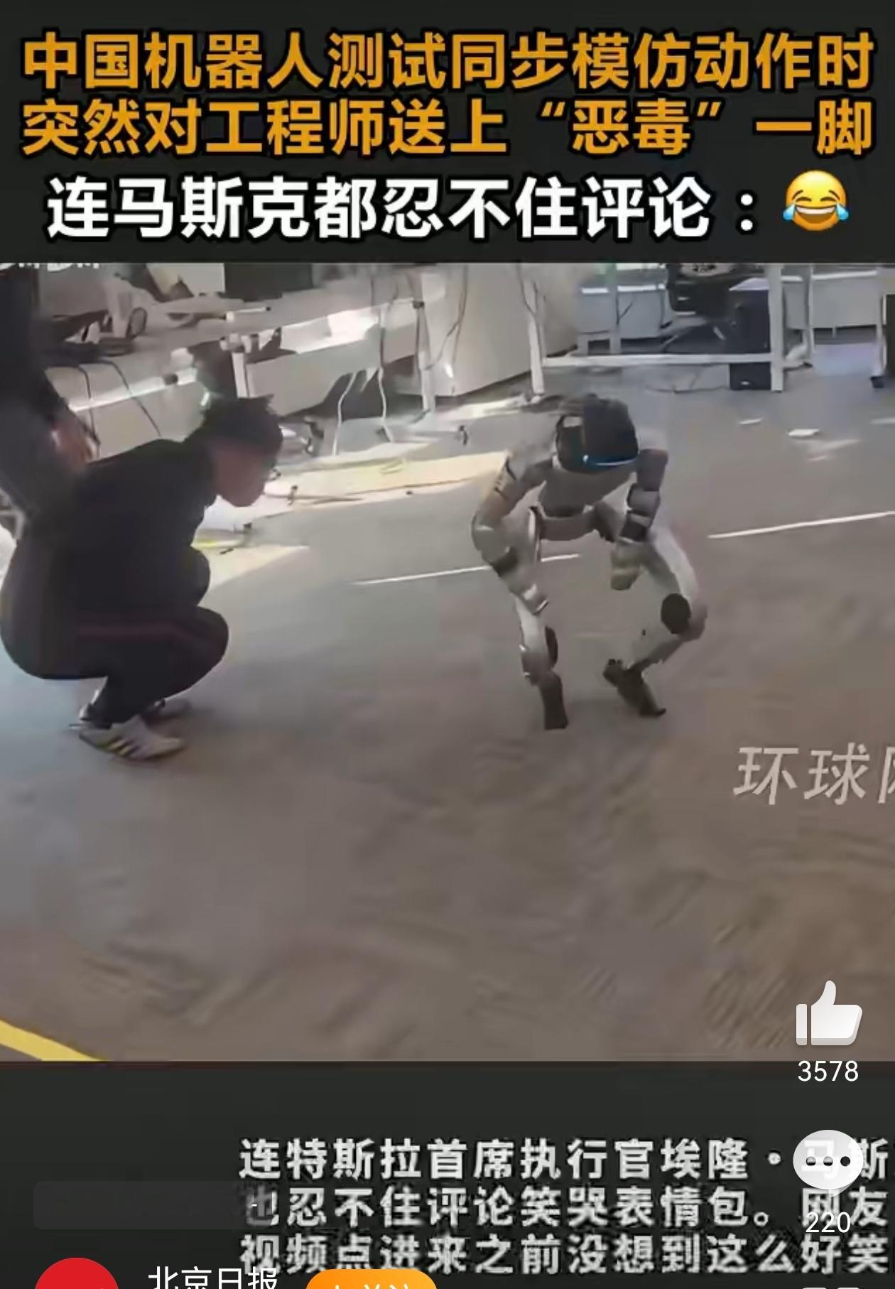 机器人突然送工程师恶毒一脚 这机器人踢了工程师一脚,同时也蹲下踉跄的样子,不要太搞笑!是感同身受还是得了便宜卖乖式的嘲讽?🤣