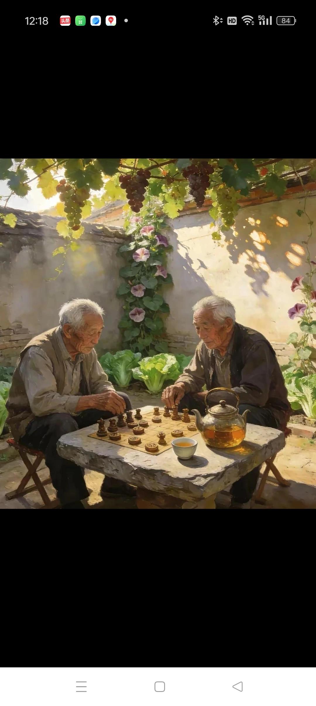 古稀不觉岁月忙 种花种菜度时光 闲来邀友棋盘坐 楚河汉界斗志昂