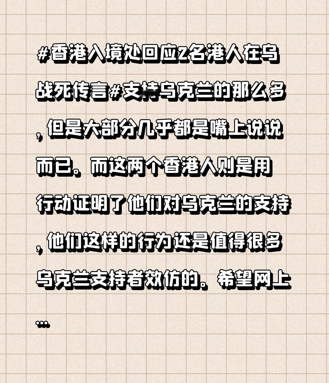 希望网上那些口口声声说支持乌克兰的人,可以像这两个香港人一样。别废话,直接前往乌克兰当雇佣军。 不然,你让别人怎么知道你是不是真心支持乌克兰的?