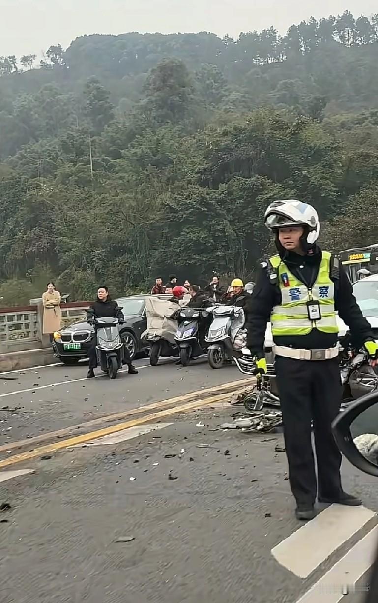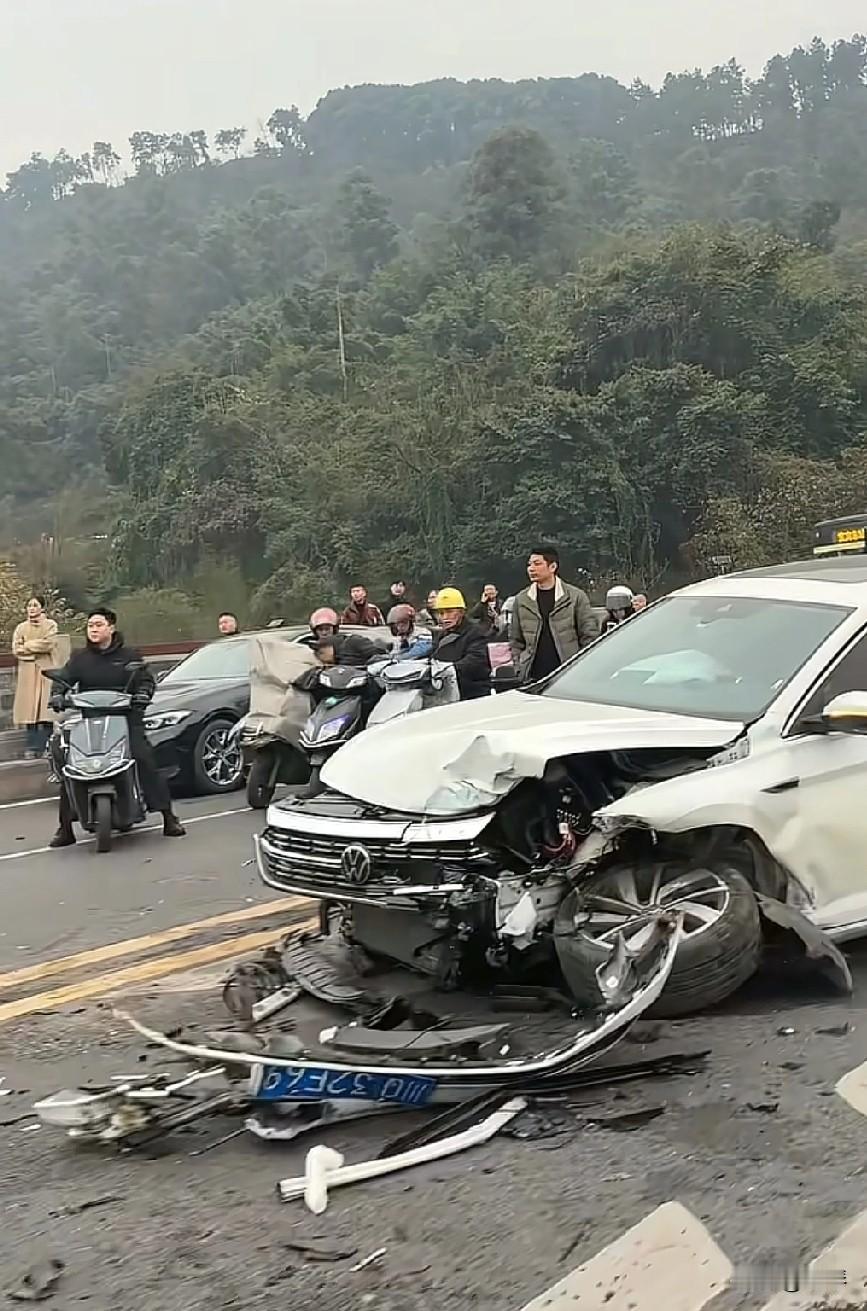 宜宾白塔山路段再发车祸,现场触目惊心。 2025年12月27日下午,宜宾白塔山附近路段又出车祸,还发生了三车连环相撞的情况。 从现场画面能看到,一辆白色轿车车头严重撞毁、车身变形,路面散落着护栏碎片,交警第一时间赶到现场维持秩序,周边也聚集了不少围观群众。 当地网友表示,这个路段年年都要发生车祸,不管是路况因素还是驾驶习惯问题,每次事故都让人揪心。 提醒大家经过这段路时,务必放慢车速、集中注意力,平安出行才是第一位的!