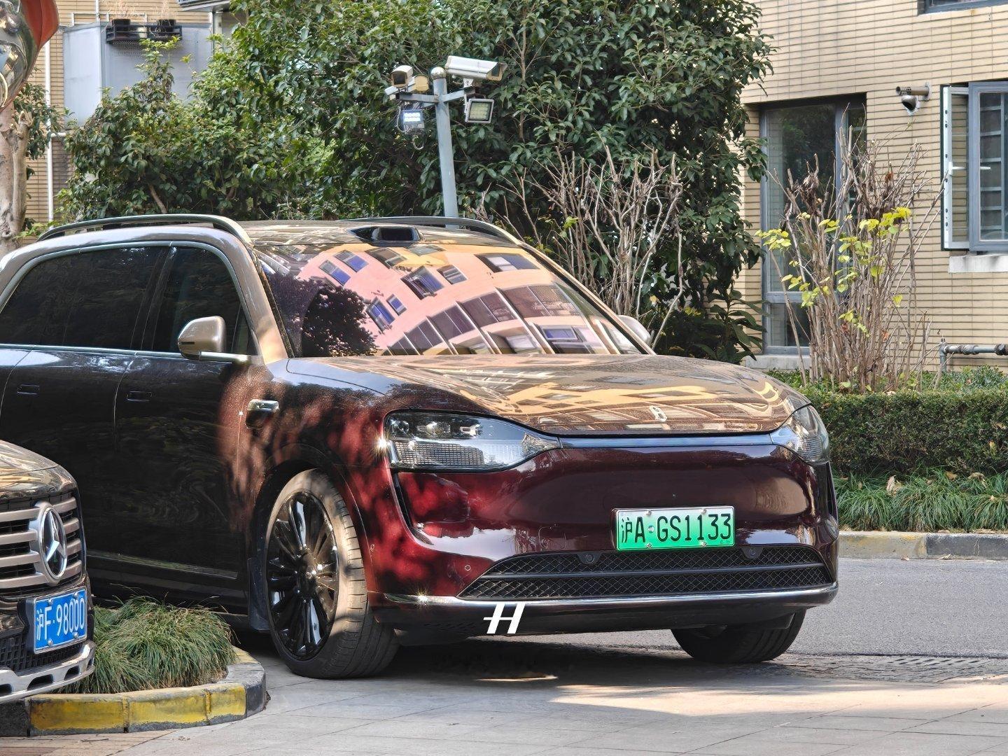 这辆金红色的问界M9我已经关注好久了,应该就是隔壁幢楼的邻居,每次一下楼就看得到。颜色非常好看,特别是在有光影的时刻,很显贵气。PS:就是绿牌真是太减分