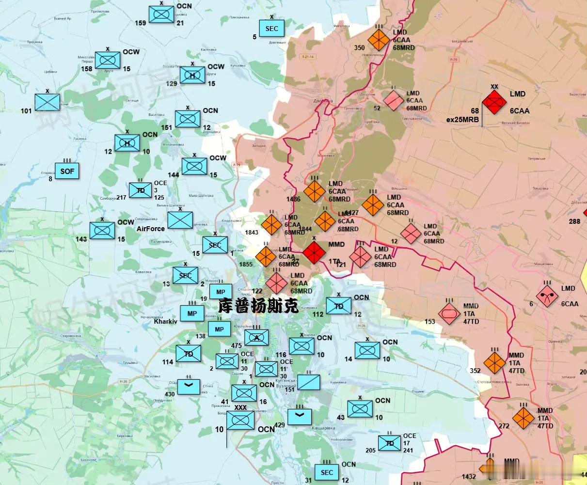 库皮扬斯克俄乌双方的兵力对比,显然乌军在投入重兵之后,占有明显的优势;而俄军主要兵力只是由西部集群指挥的北部集群第68摩步师,况且防守区域也太大了。 即便如此,乌军反攻进展仍然缓慢。俄军西部集群现在就是依靠防守,牵制乌军大批兵力,使俄军其他作战集群能够在战场上有更大的进展。从全局意义上讲,俄军西部集群的贡献并不小,只不过在场面上比较难看。#俄乌冲突#