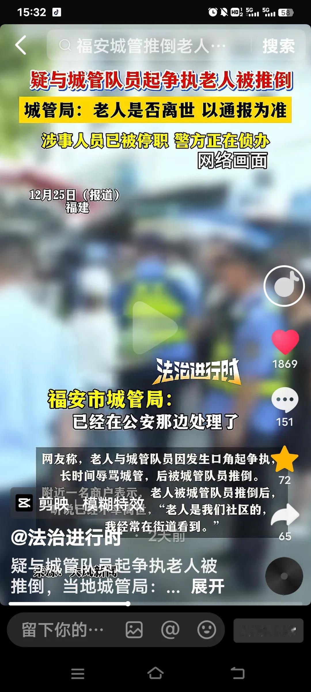 最近,福建福安的这起事件闹得沸沸扬扬。有网友发布视频,画面中一位老人疑似与城管队员发生争执,被推倒后不幸离世。视频里可以看到,老人朝着城管走去,城管则迎面跑来,将老人推倒在地。 有网友说是,老人与城管发生了口角,还长时间辱骂了城管队员。12月25日,记者向福安市城管局询问此事,工作人员表示涉事人员是临时工,该事件已有专人负责处理,警方也已介入调查,涉事队员当天就被停职。 说到底,各行各业都有各自的难处。即便老人辱骂了你,也不该动手推搡。“现在好多人都明白要远离老人,你身为城管,怎么还敢动手?”有网友如此说道。还有人调侃“这下城管得卖房子卖车咯”,甚至有人认为这是故意杀人,各种看法层出不穷。 附近商户称,老人是社区居民,12月21日被推倒后就没了。不过,目前老人是否离世,仍需等待公安部门的通报。这起事件给大家敲响了警钟,执法时一定要注意方式方法,避免悲剧再次上演。 福安拆除工程 城管倒地事件 万能生活指南