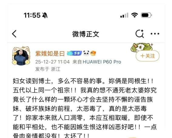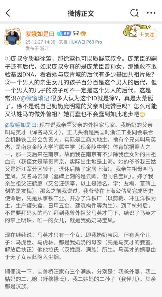 不装了, 徐莺发文骂庞叔令是“老妇人”, 徐莺突然撕破脸发文怒骂庞叔令,称对方毁了自己博士资格,实则她硬认庞家祖宗被网友揭穿身份造假。 好好一个高校副教授,张嘴就骂人,就算真受了委屈也不能这么没教养,真是白读了那么多年书,丢尽了咱们读书人的脸面。 自己有家世不认非要硬贴别人家族,被戳穿了就倒打一耙恶人先告状,这脸皮厚得都能当城墙,真是离谱到家了。 祖上做了对不起国家的事就想换个身份躲过去,天底下哪有这么便宜的事,做错事就要认,甩锅跑路算什么本事。 不想着反思自己的问题,反而把所有锅都甩给别人,都被网友扒得底朝天了还嘴硬,真是不见棺材不落泪。