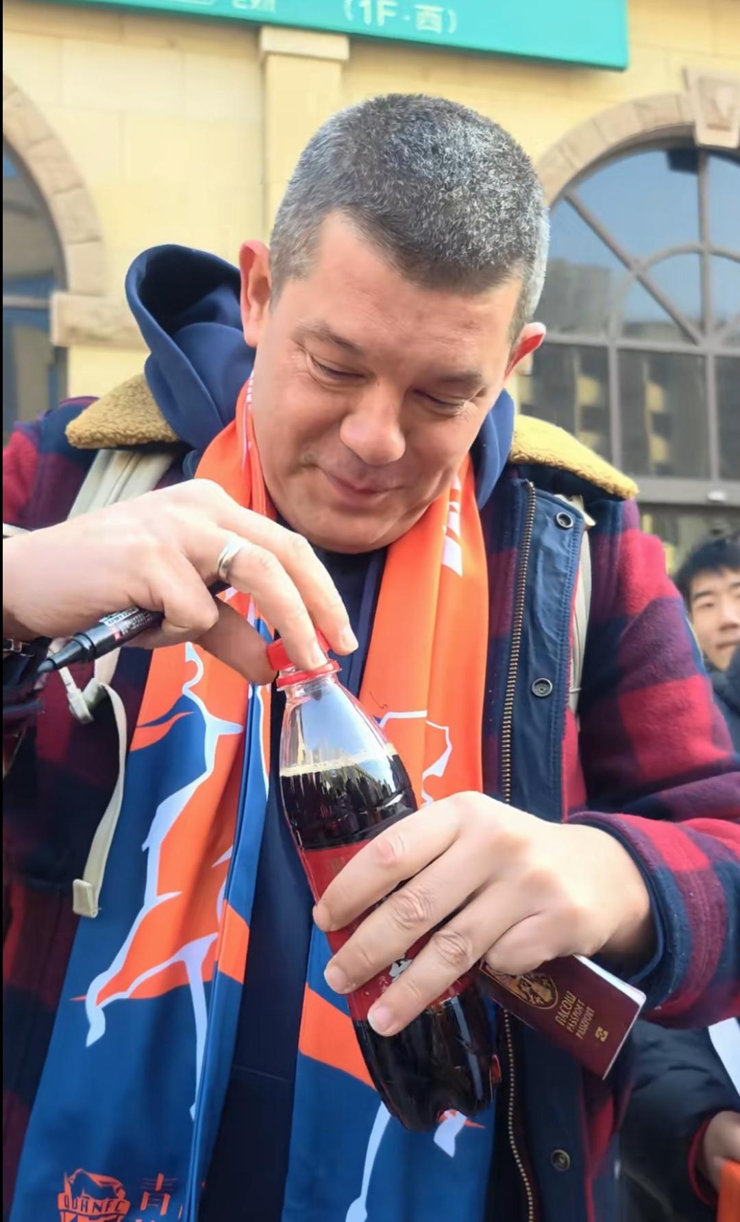 刚下飞机就先来瓶可乐! 据《青岛日报》记者孙飞报道,青岛海牛新帅米兰·里斯蒂奇乘机抵达青岛后,在接机的青岛球迷的鼓动下,第一时间喝了一瓶崂山可乐。 米兰应该也听说了崂山可乐3年赞助青岛海牛4500万的消息,如果没有崂山可乐出手相助,恐怕青岛海牛连准入都过不了,米兰也只能继续在家待业了。 从米兰下了飞机就干掉一瓶崂山可乐来看,这名屡败屡战的教练还是挺接地气的,希望下赛季能够率领青岛海牛顺利保级。中超