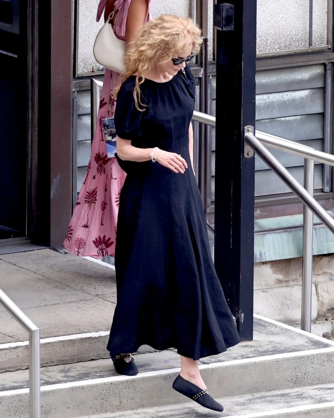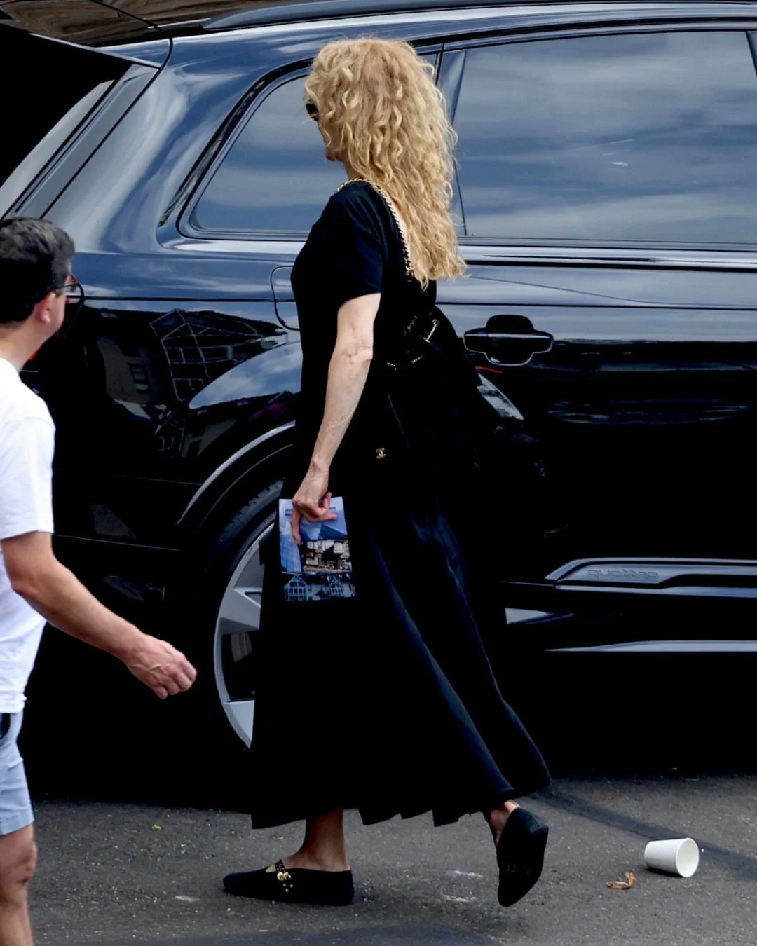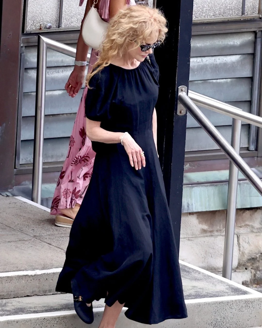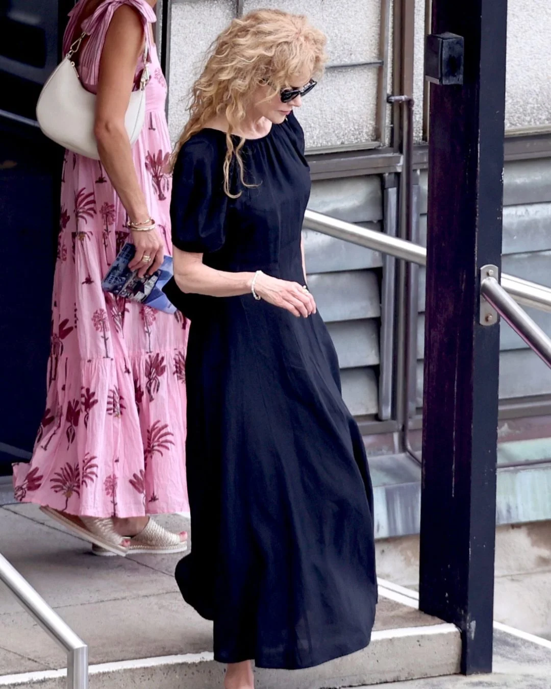 妮可基德曼今日街拍,又穿了一条黑色裙配平底鞋,好美好轻盈,前两天那件黄色长裙配金色凉鞋,也很有度假feel! 图源 网络 侵权删 妮可基德曼