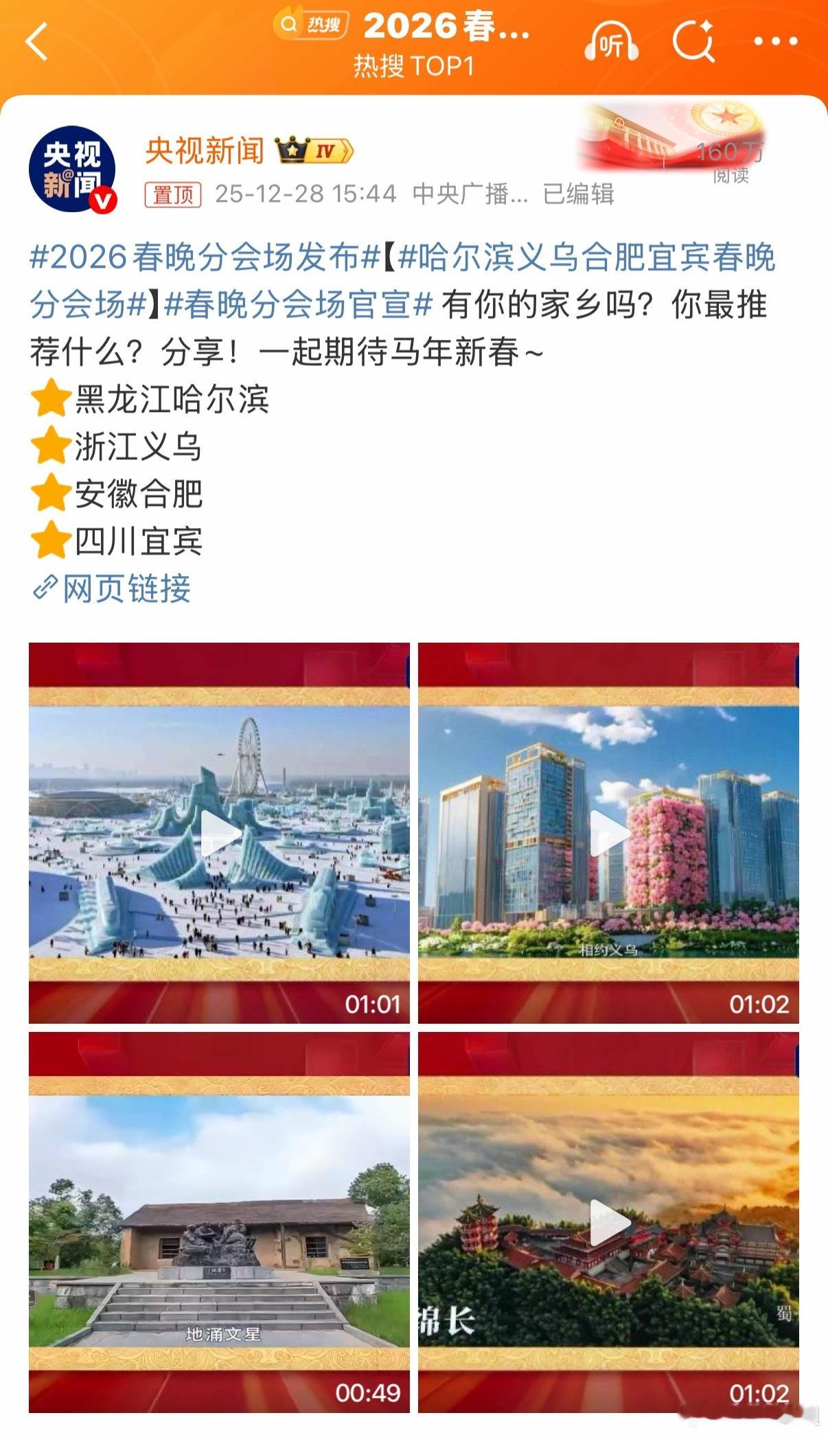 2026春晚分会场发布26年春晚分会场终于来我们安徽啦我猜合肥分会场应该会结合科技和新能源吧