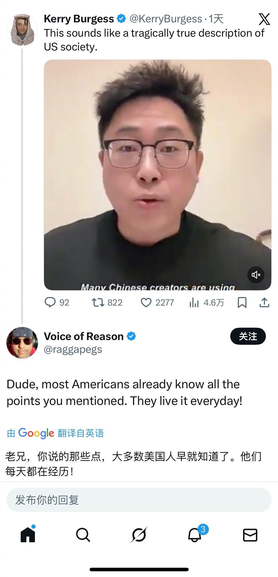 斩杀线的介绍视频传回美国了,有一种要在X上对帐的趋势……评论区里大多数人不是不服气,反而有人说:老兄,你说的那些点事,大多数美国人早就知道了。因为他们每天都在经历!还有人说,老天爷,我40多了才发现社会主义也不错。评论区里同意的人甚至有maga,不过他们要干倒金融暴政的思路是查出杀查理 ·柯克的凶手(针对谁我不敢说