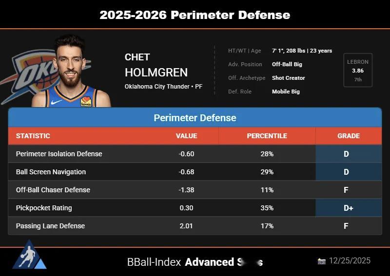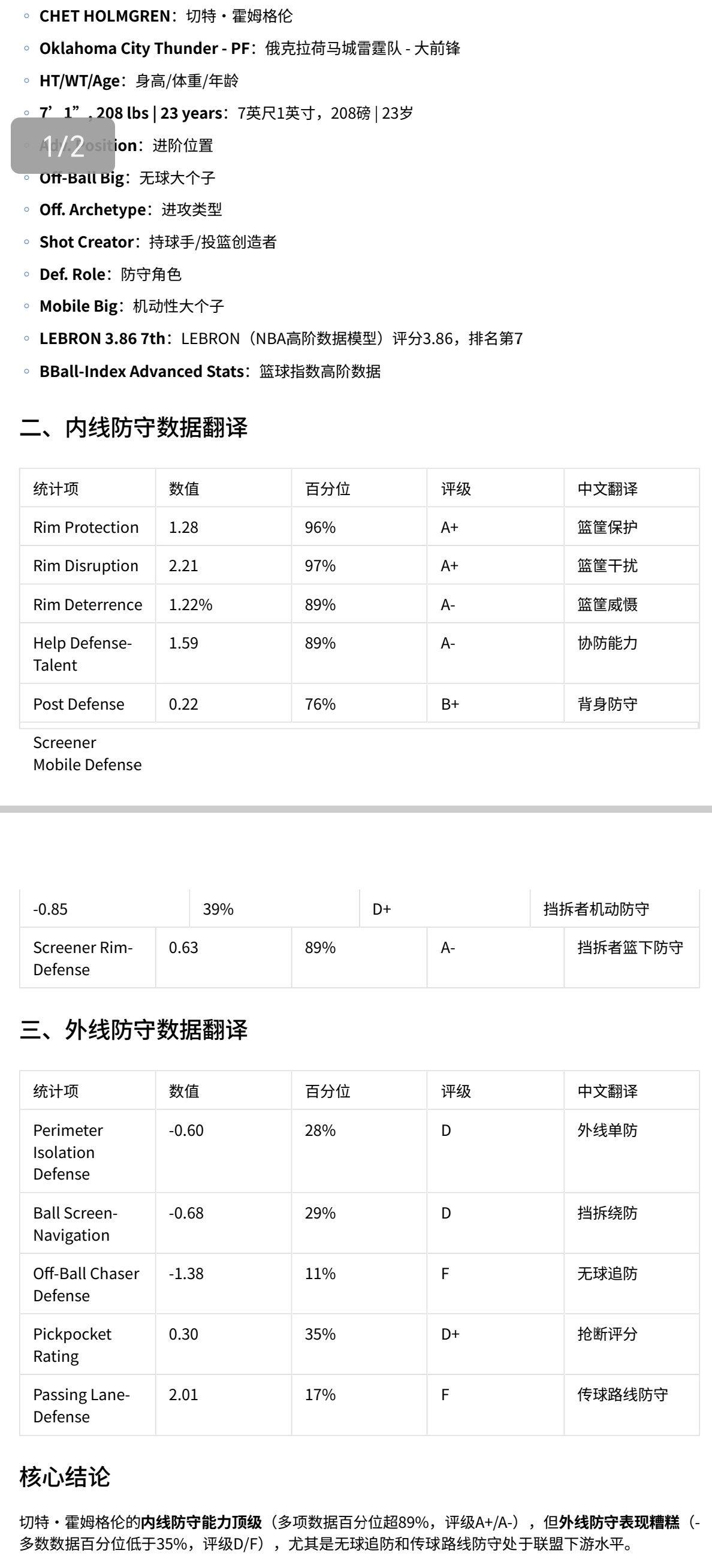数据网站BBall Index:如果你想挑战切特的篮下防守,那你会很头疼。最好的方法是将他调离篮下,利用挡拆或速度从外线发起攻击,如同像哈里森·巴恩斯那样。编辑by蓝色狂潮OKC76人vs雷霆雷霆马刺三杀雷霆