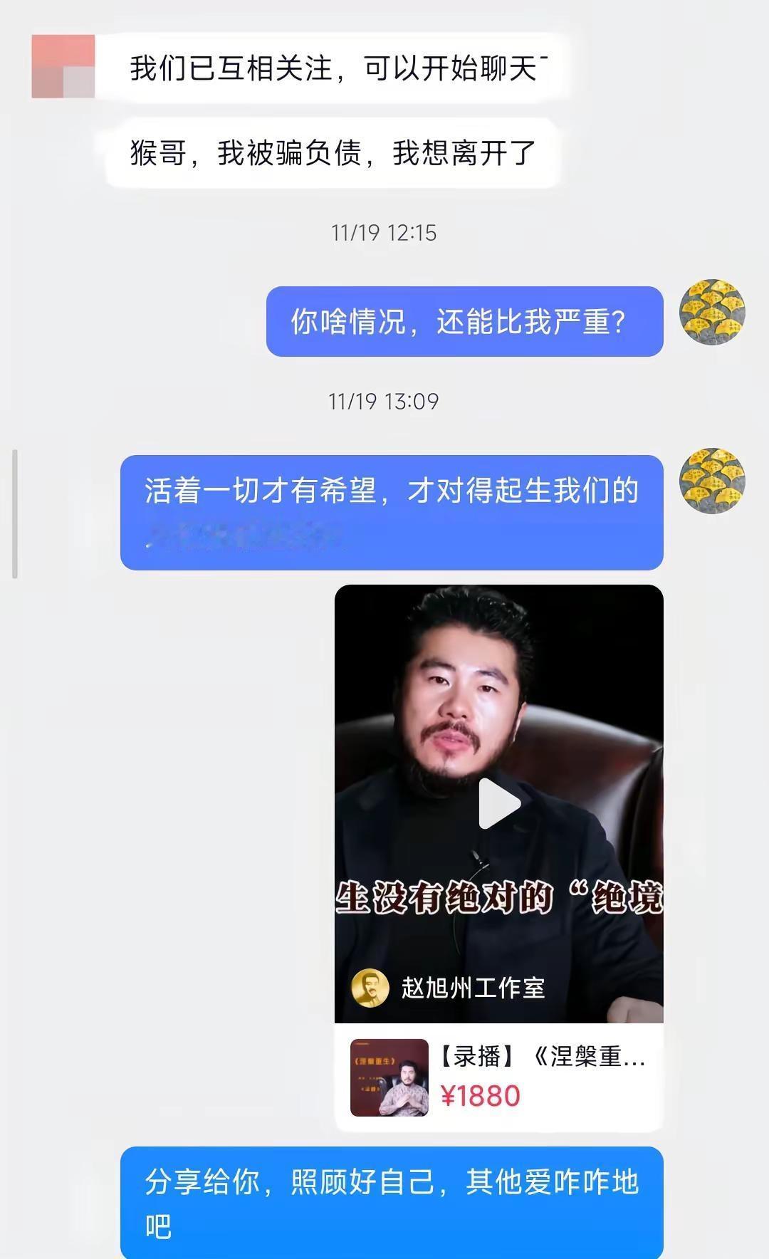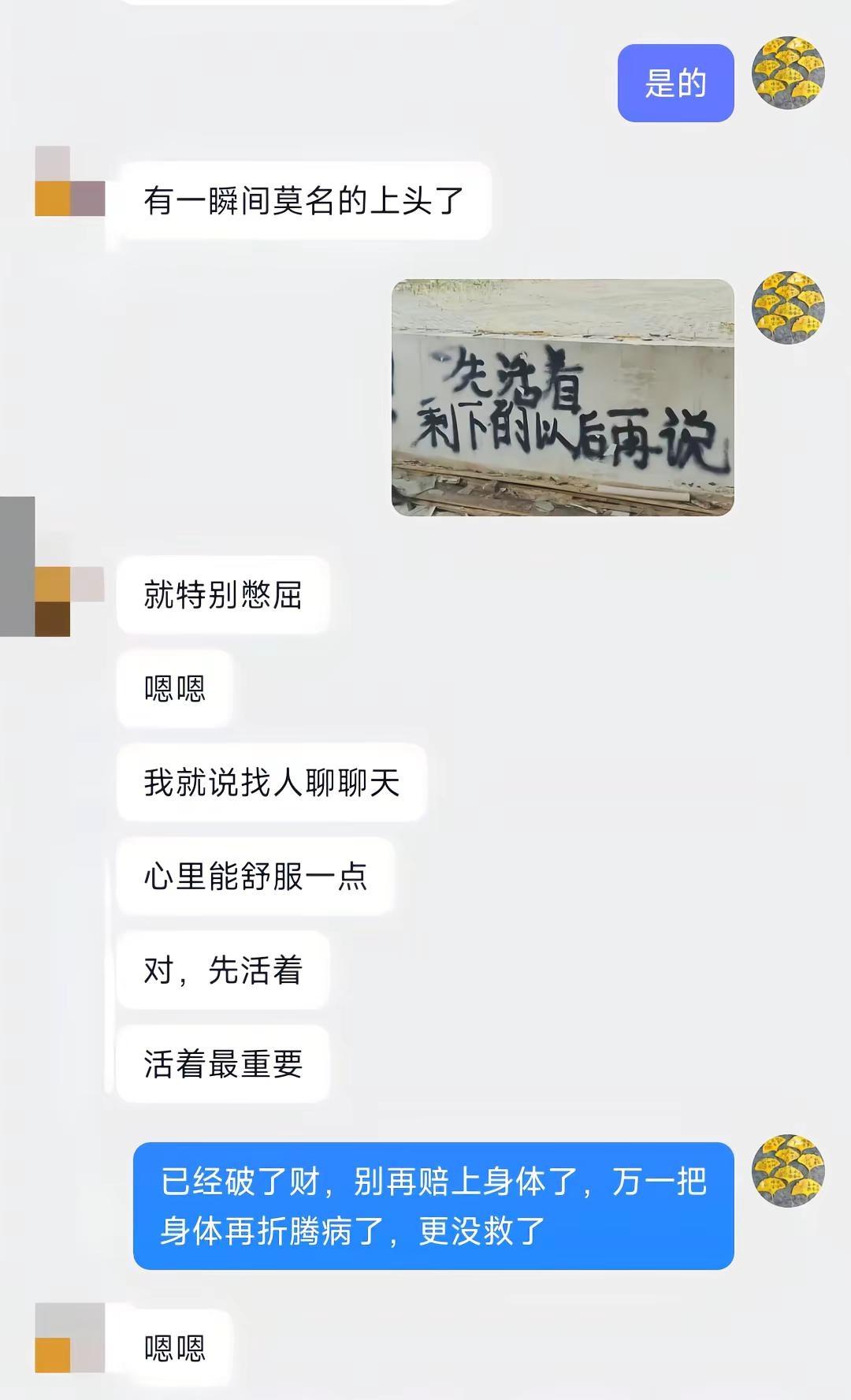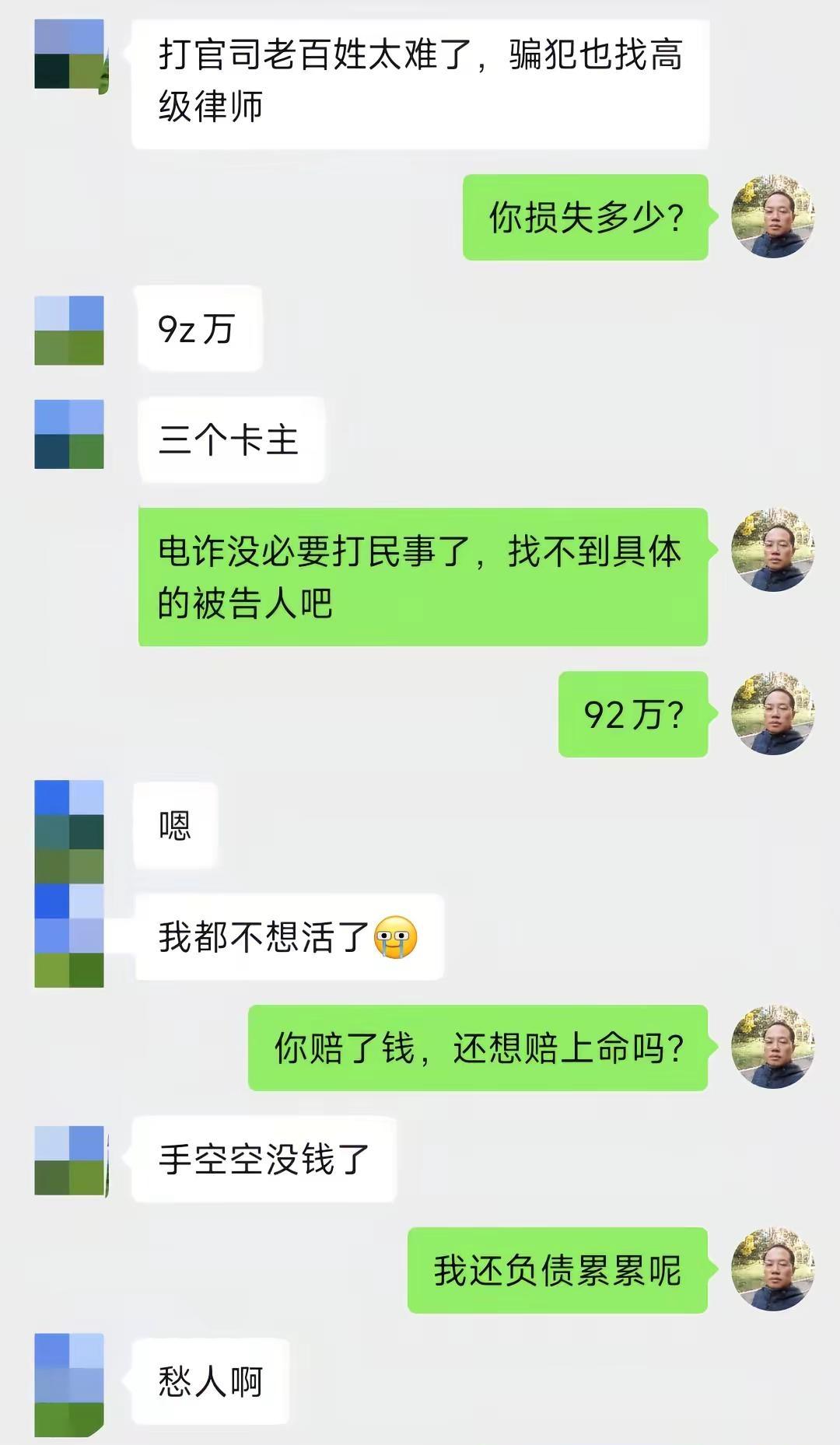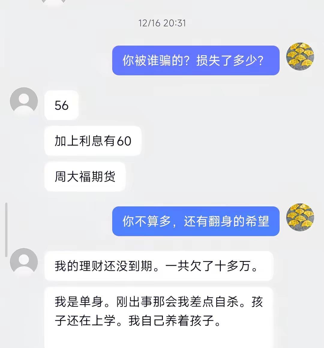 被骗后才知道还有这么多被骗巨款,负债累累,生不如死的受害者,很多人被骗后都郁郁寡欢,悔恨不已,心如死灰。我在劝别人想开的同时,自己也是一边崩溃,一边缝合。再次提醒各位,凡是借钱的,让你投资的,下载东西的,千万要慎之又慎,不然人生一旦走错路,可能会毁了一生,连累家人。愿大家都心如明镜,让骗子无法生存。
