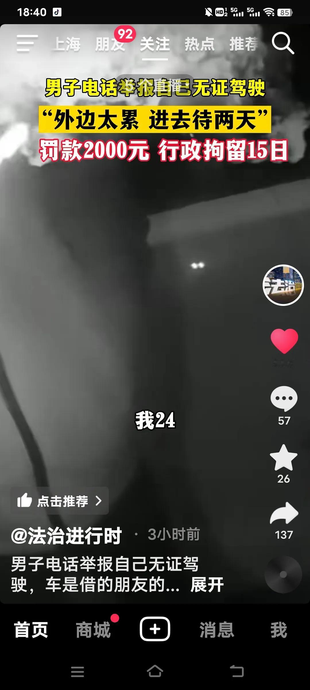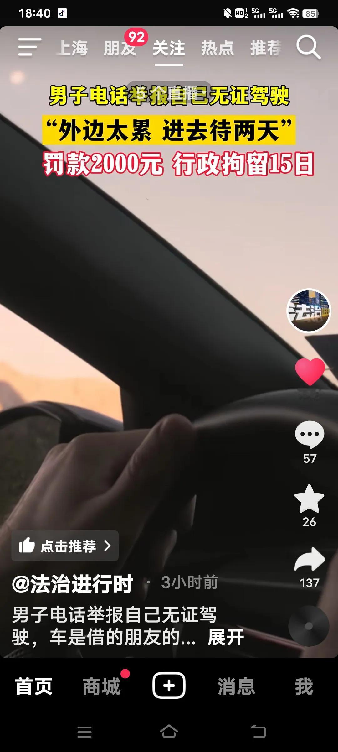 天下竟有这般人物!内蒙古有一男子打电话举报自己无证驾驶,车还是跟朋友借的。他称自己压力太大,就想进去待两天。 有人问他年龄,他答24岁。这样的人,到底是正常还是不正常呢?就算坐拥上亿家业、吃遍世间美食,也不该想着到里面待几天啊!更何况,车是借的,还白白搭进去2000块钱,换来15天拘留。 这简直是天大的笑话!评论区里,网友看法不一,有人说他太善良,想进去以免伤害他人。可世上真有如此“善良”之人吗?实在令人无语!酒驾无证驾驶 无证醉驾