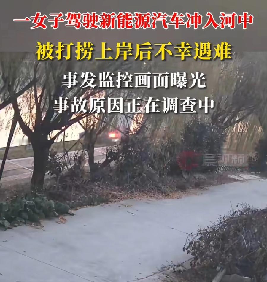 天门30岁女司机,新能源车冲入河里溺亡!看附近居民家监控,事发7点整,小车开着大灯,车速不快,朝河里方向,先后垂直越过门前水泥路、树木绿化带、河边人行道,直愣愣地掉入河中!如果说刹车失灵或者油门当刹车,为什么方向盘一点没动?是否女司机走神了,看一夜了或者起床早犯困?看手机?天这么冷,以如此方式发生意外,痛惜!到底车原因还是女司机人原因?看后续警方通报!
