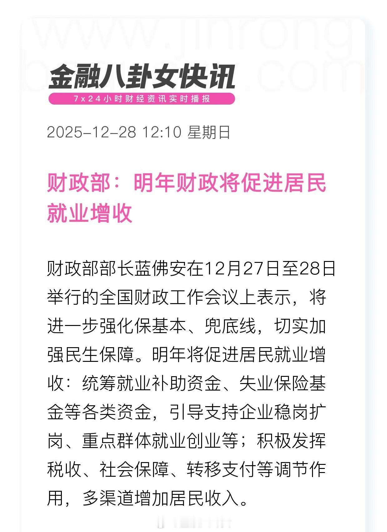 财政部:明年财政将促进居民就业增收财政部明年将促进居民就业增收