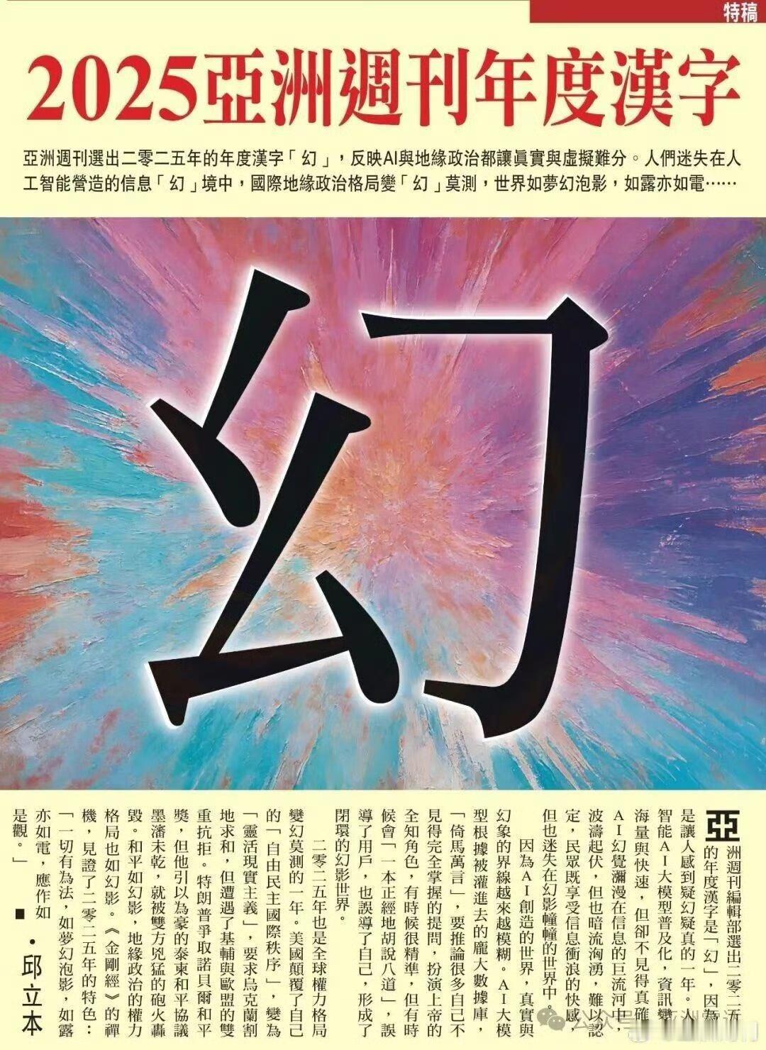 2025年亚洲周刊年度汉字“幻”,果然名符其实。关于南博的信息,全部魔幻般删除干净,就好像没有发生一样。 亚洲周刊一直陪着庞叔令硬刚南博,也好像福尔摩斯一样,每天都有新线索。 也让事情的真相迷雾,渐渐被拨开,没想到,一下子就删除干净。 这也许是为了不干扰调查组的调查吧,毕竟知情人只发信息给你亚洲周刊,不给调查组,也不利于调查。 只不过没有了舆论的监督,事情真的能真相大白吗,调查结果真能服众吗,这也是把双刃剑。