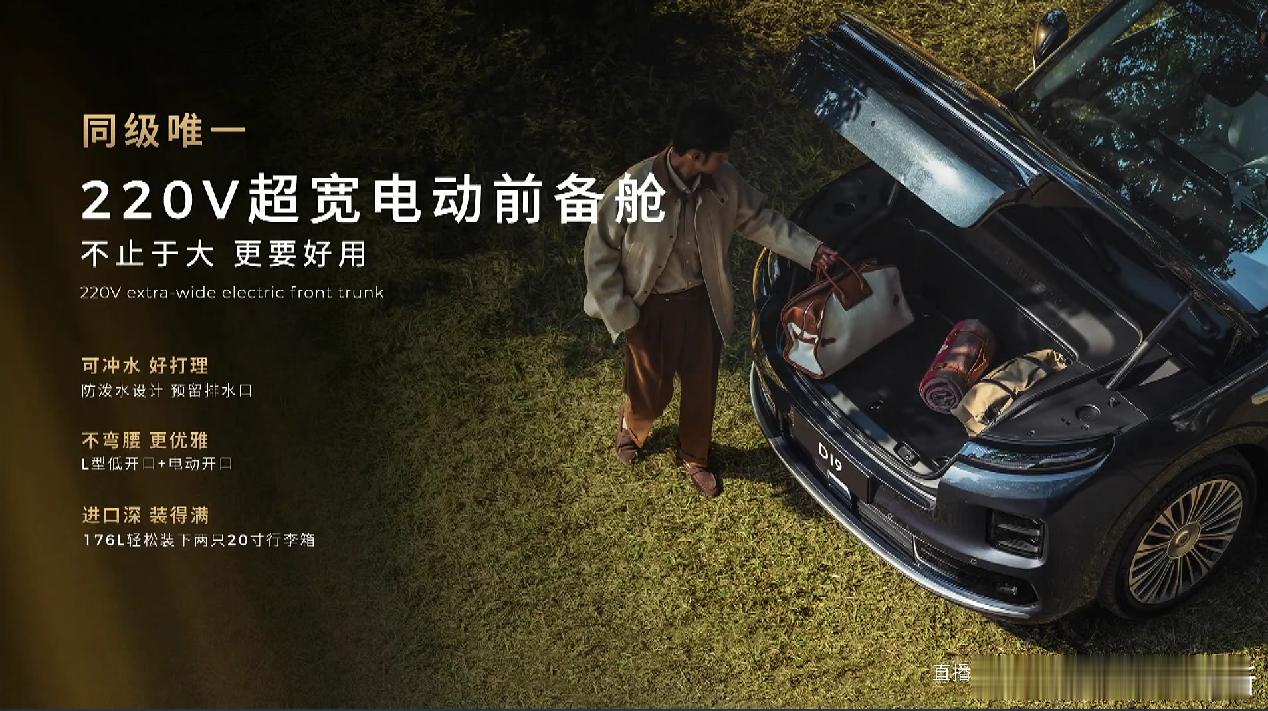 零跑 D19 拥有 220V 的电动前备舱,176L 的纯平空间接上官方的拓展套件,煎烤煮炖都可以实现;后备箱可以放置四个 20 寸的登机箱,二三排座椅放倒,能够拓展出 1338 L的近乎纯平的大空间零跑10周年发布会零跑D19