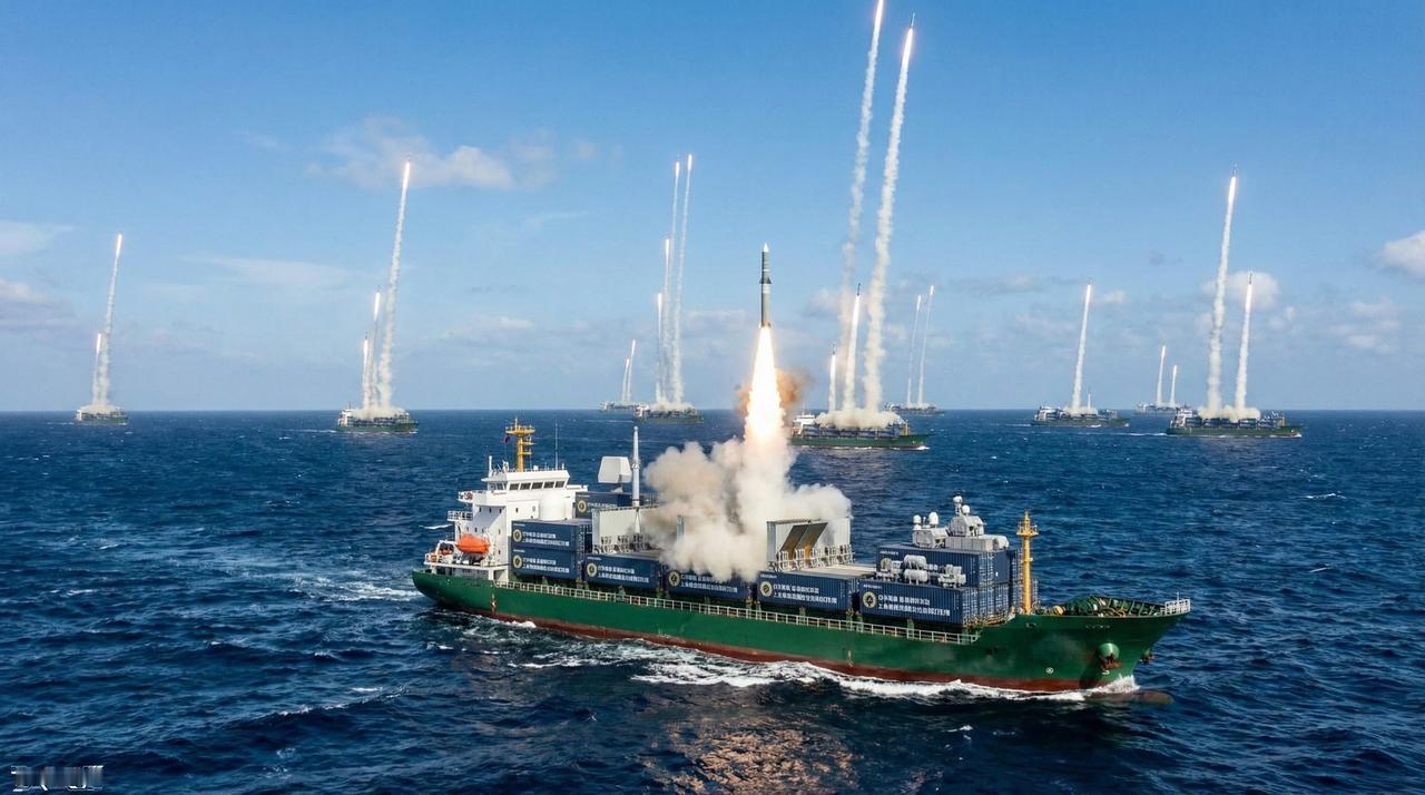 中国海军集装箱武库舰编队,正在对目标进行饱和攻击,全舰队齐射!就这个火力水平,你看小日子能不能接住呢?法国海军能接住吗?如果形势压迫,中国能够拿出多少支这种规模的集装箱船舰队呢?