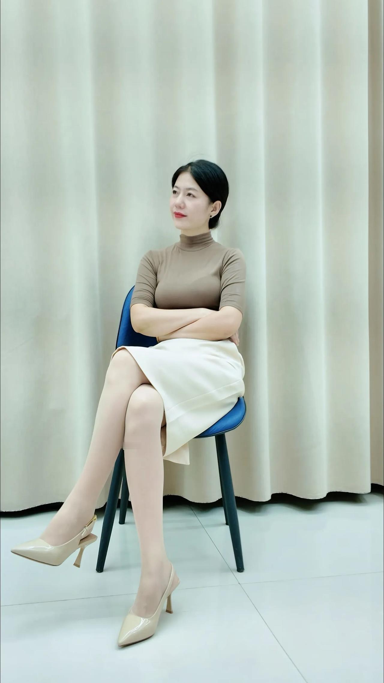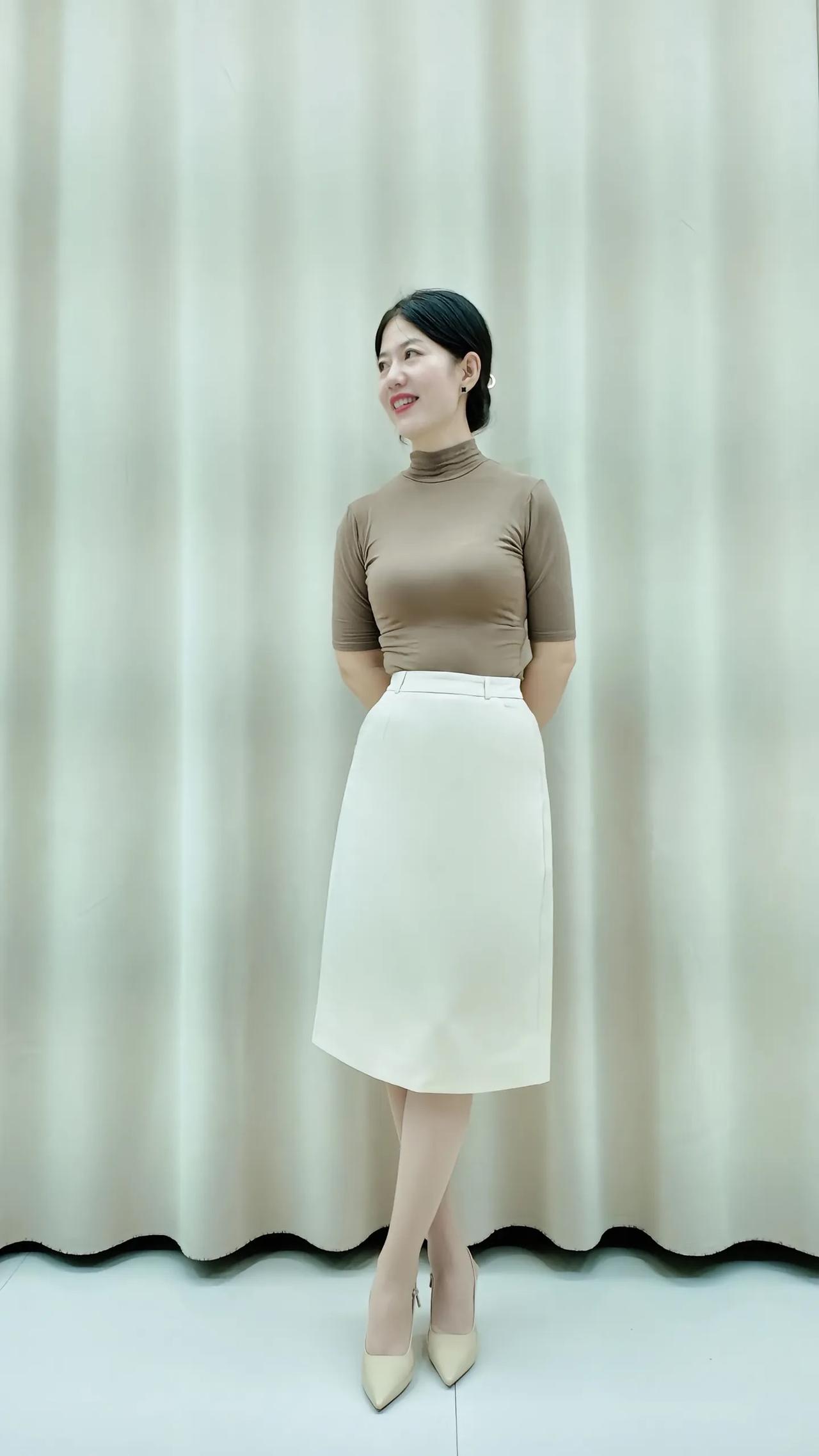 优雅气质穿搭,米色高领衫搭配白色半身裙,简约而不失时尚感。