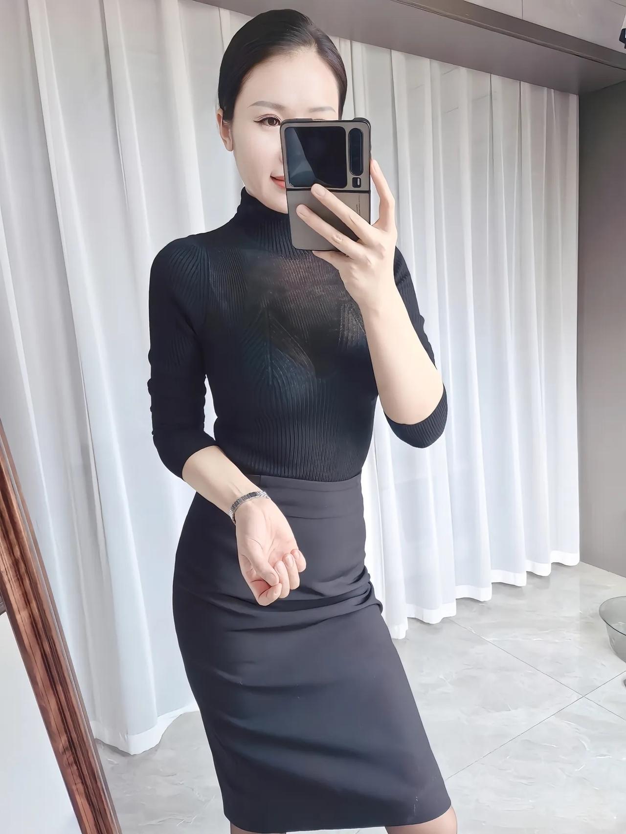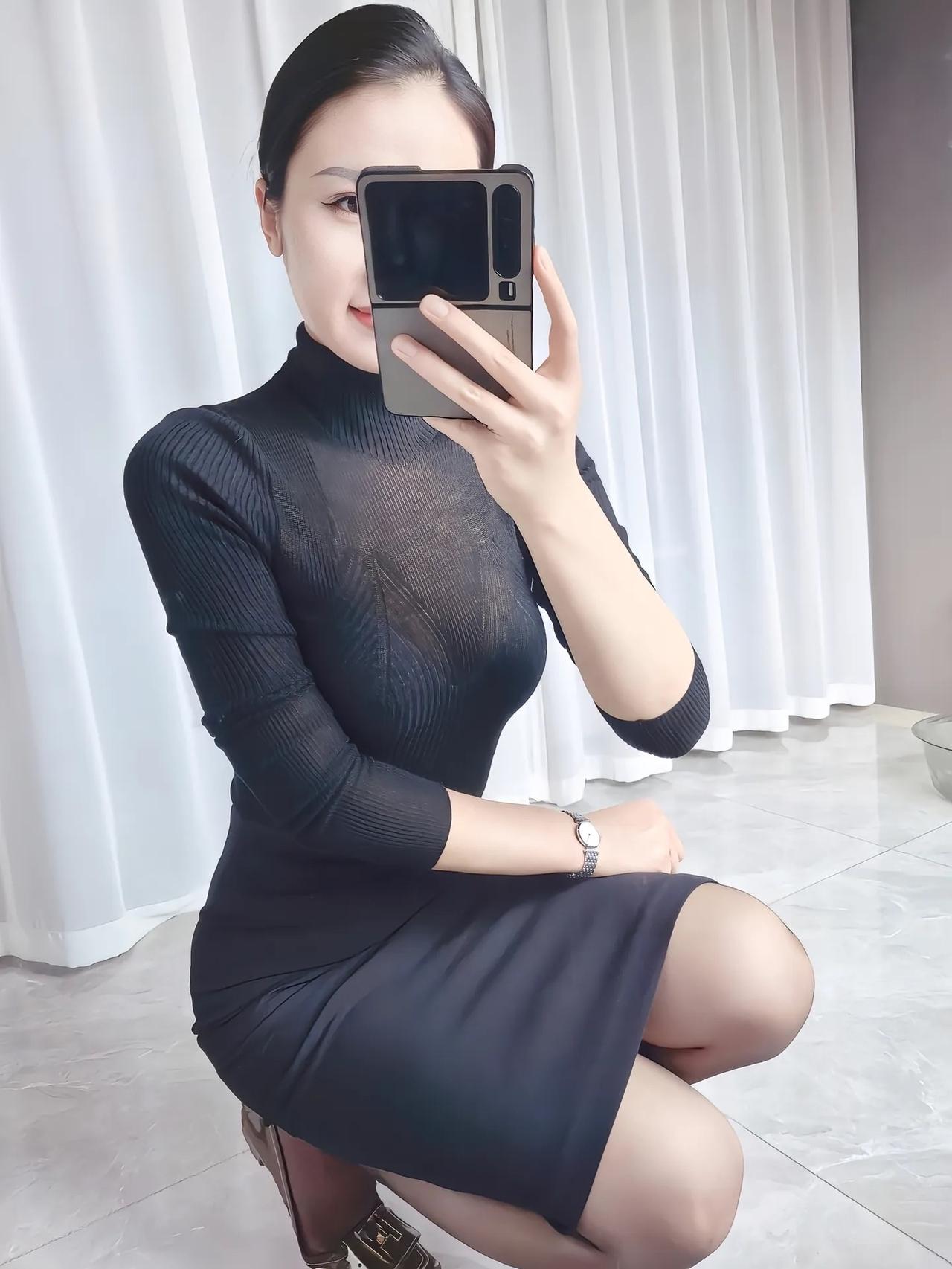 优雅气质穿搭,黑色透视连衣裙,自信自拍!