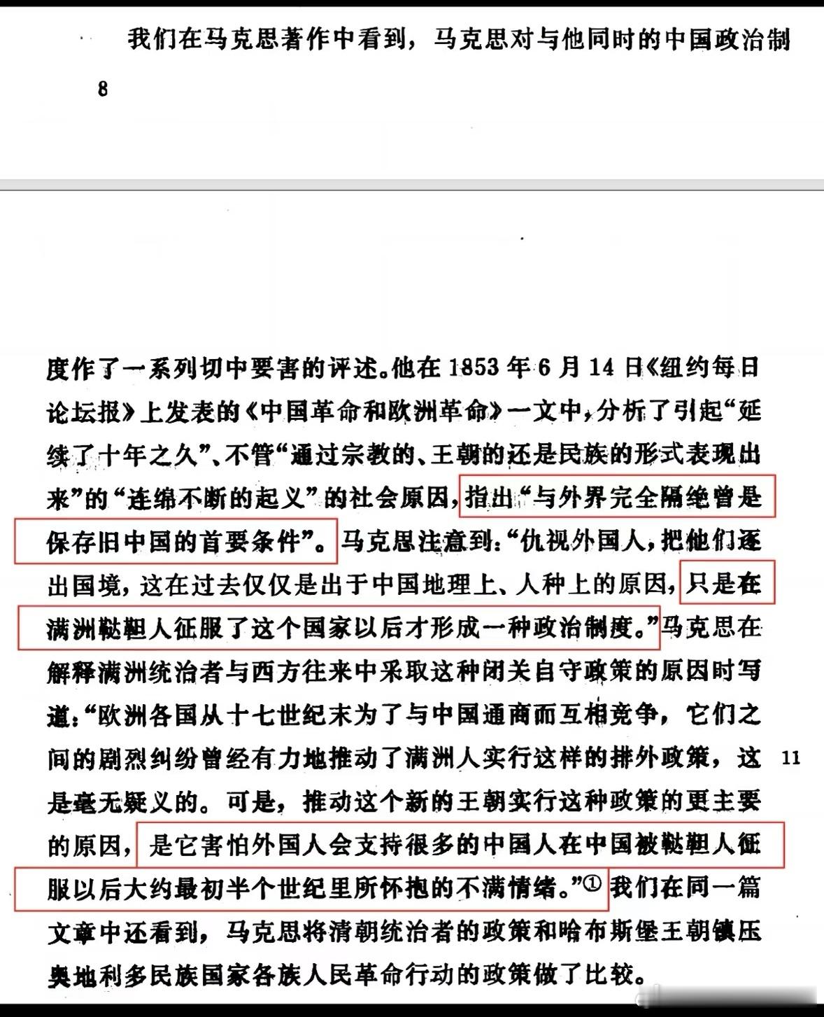 马克思在1853年《中国革命和欧洲革命》里直接点破:清朝搞闭关锁国,核心是怕外国人支持那些对鞑靼人统治心怀不满的中国人!说白了,满清的锁国从来不是为了国家,而是为了保住自己的统治权。恩格斯在《反杜林论》里更是直言:野蛮民族的征服只会阻碍经济发展、摧毁生产力。而《德意志意识形态》里也提到,蛮族入侵足以让发达的生产力一夜回到原点。