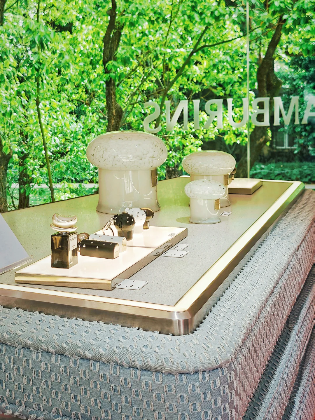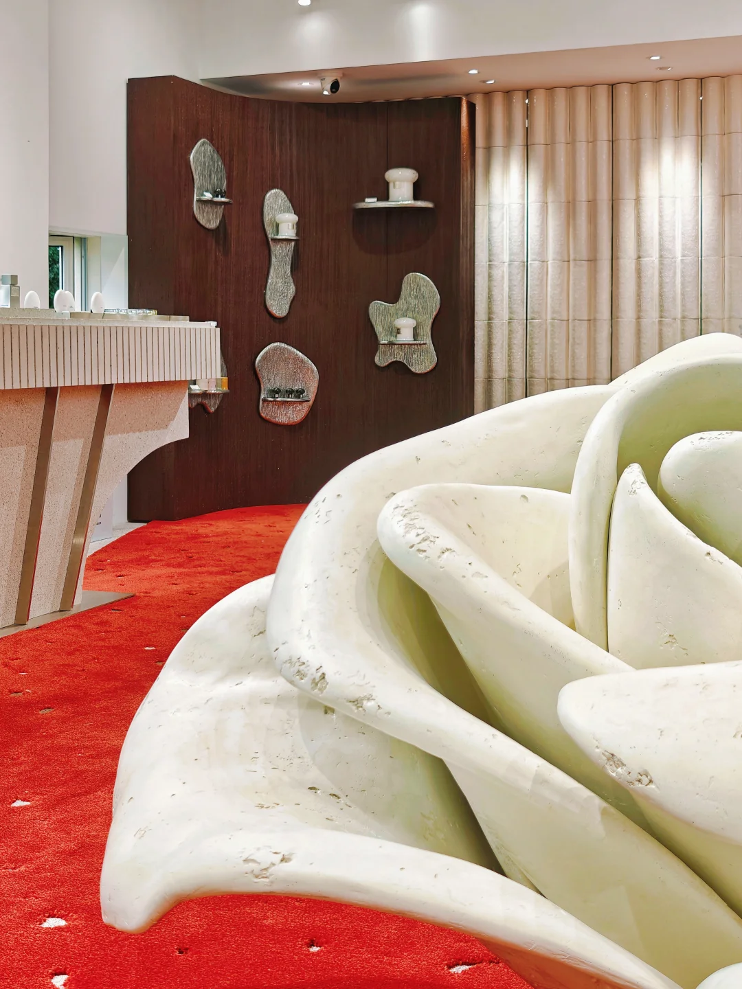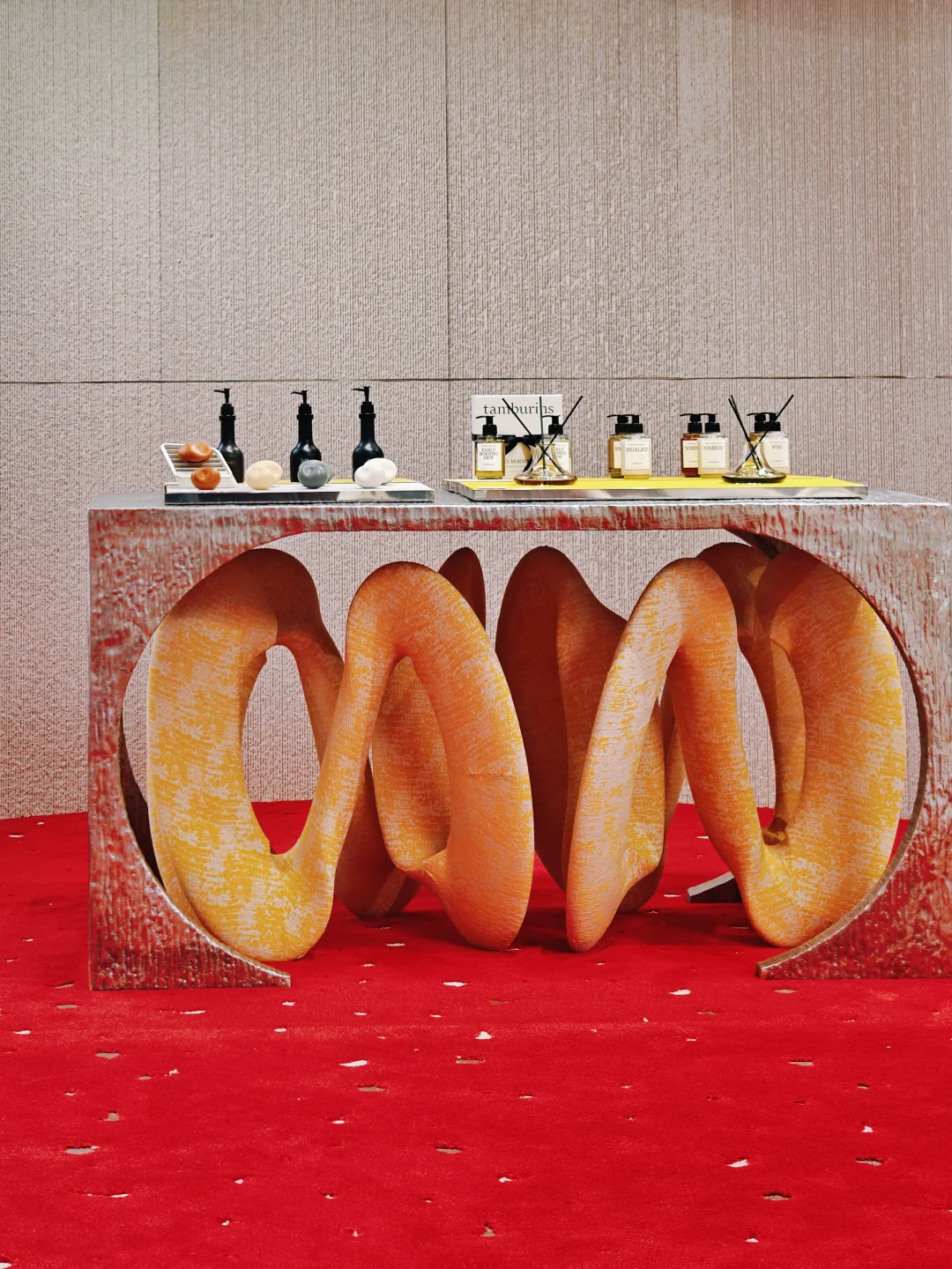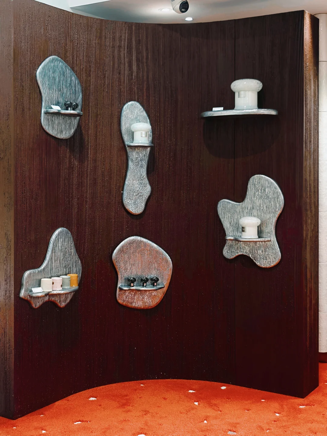 🍄与知名艺术组合 A.A.Murakami 联名打造的巨型感官装置「THE SPACE BETWEEN THOUGHTS」,陶瓷手工窑烧,还会不停地“吐烟圈”——模仿蘑菇孢子爆发瞬间。可以触摸陶瓷装置的细腻肌理,感受艺术与香气的共生。