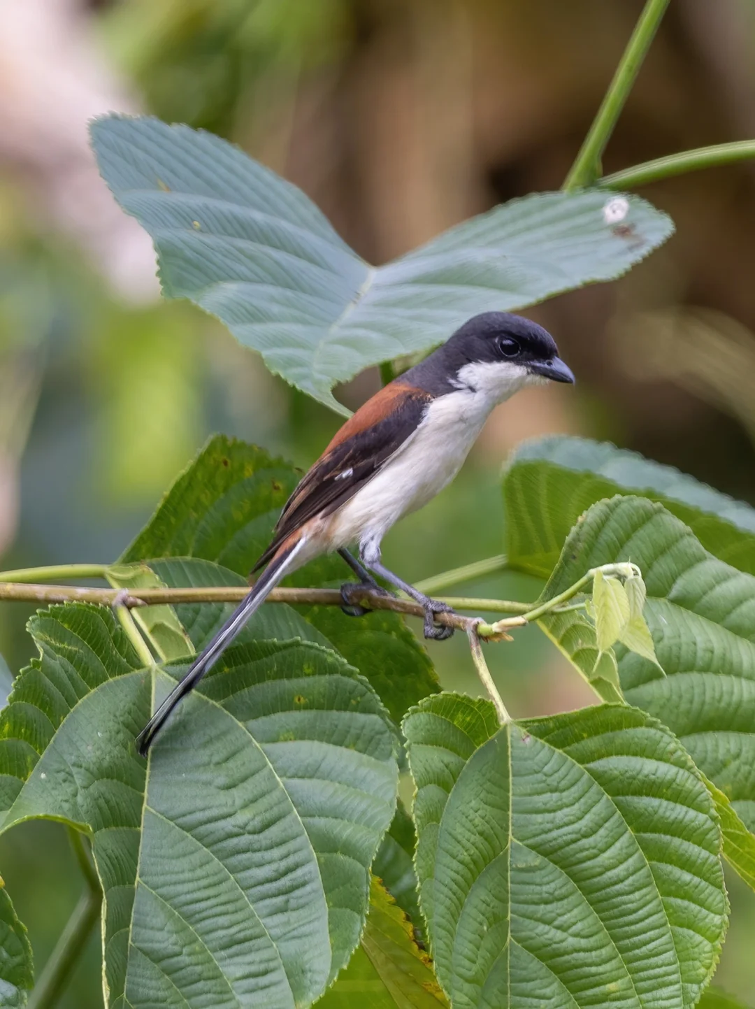 原创拍摄 栗背伯劳,雀形目伯劳科伯劳属的。也叫缅甸伯劳,和我们常见的棕背伯劳有一点点不同,在我国是边缘分布,不常见,但是又不怯生,甚至还挺凶猛(相对而言),主要喜欢吃鞘翅目的昆虫,金龟子什么的。 栗背伯劳和我们常见的棕背伯劳相比,尾巴比较短,尾羽边缘为白色。