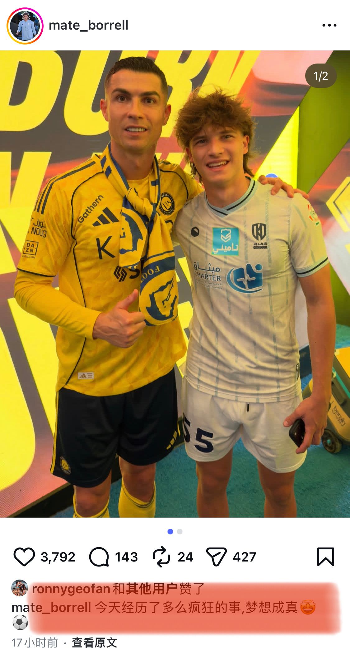 虽然0-3输了但和偶像同场竞技还合照了梦想成真利雅得胜利3比0阿科多