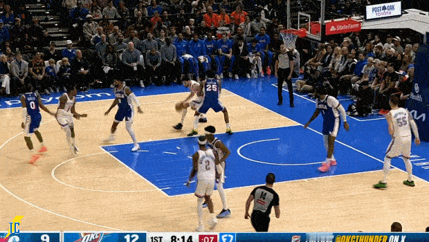 杰伦与哈腾互相助攻对方打成配合,随后切特中投单打命中,雷霆开场一波16-9打停76人!76人vs雷霆雷霆