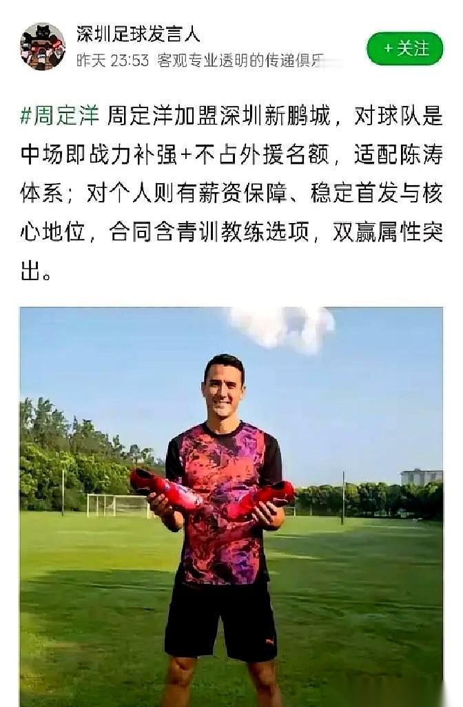说句大实话,这哪里是在谈转会,这分明是一个30岁男人最清醒的“后半生规划”。 当你还在震惊成都的队长为什么要去一支保级队时,看看深圳新鹏城摆在桌上的筹码吧:500万顶薪,外加20%的出场费。但这都不是重点,真正的杀手锏是那个条款——“3年后直接转青训教练”。 兄弟们,摸着良心说,换做是你,这字你签不签? 对于一个职业球员,30岁就是一道坎。在这个年纪,甚至比我们要更早面对“中年危机”。深圳那边防线烂成了筛子,场均丢2个球,主教练塔托急得要命,周定洋场均4.1次的抢断就是他们的救命稻草。 但这不仅仅是战术层面的互补。 别再去扯什么情怀和背叛了,太轻飘。在这个金元退潮的时代,所谓的豪门梦都太虚,只有落袋为安的保障才是硬道理。球迷的挽留书写得再感人,也给不了他作为丈夫和父亲想要的那份安稳。 成都拿到了夏窗补强的钱,深圳买到了保级的“腰”,周定洋换来了未来十年的饭碗。 这事儿你看懂了吗?这不是足球,这是赤裸裸的生活。当理想主义退场,那个为了家庭精打细算的男人,才最真实。