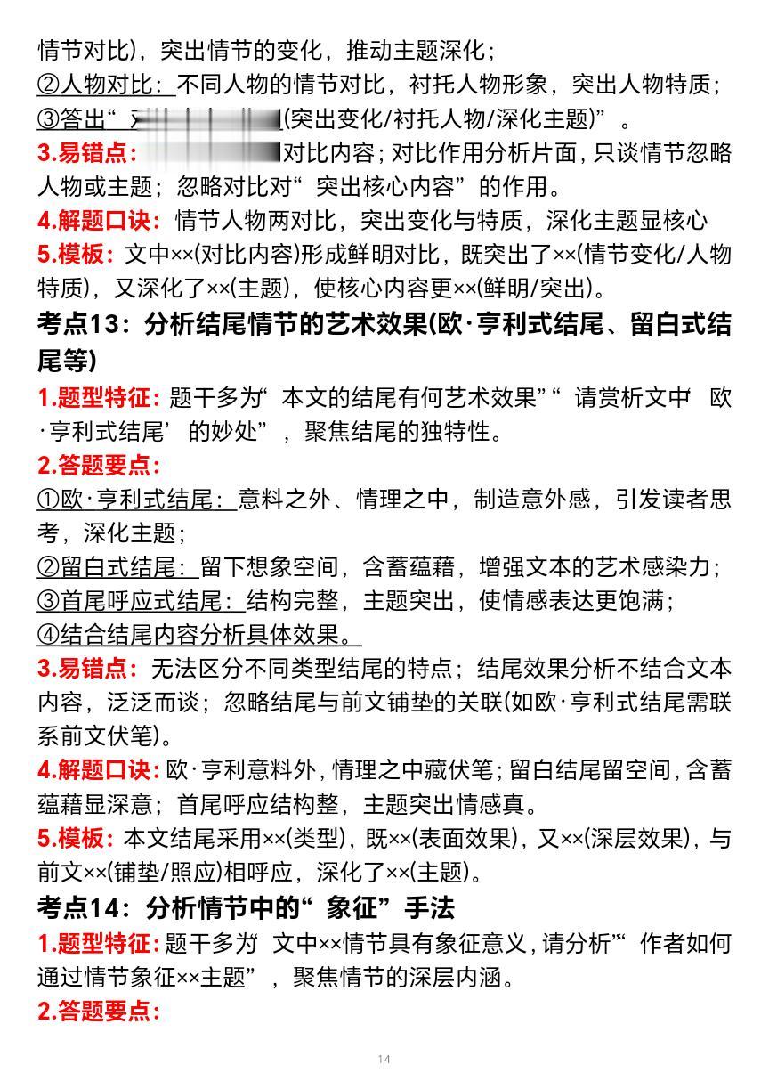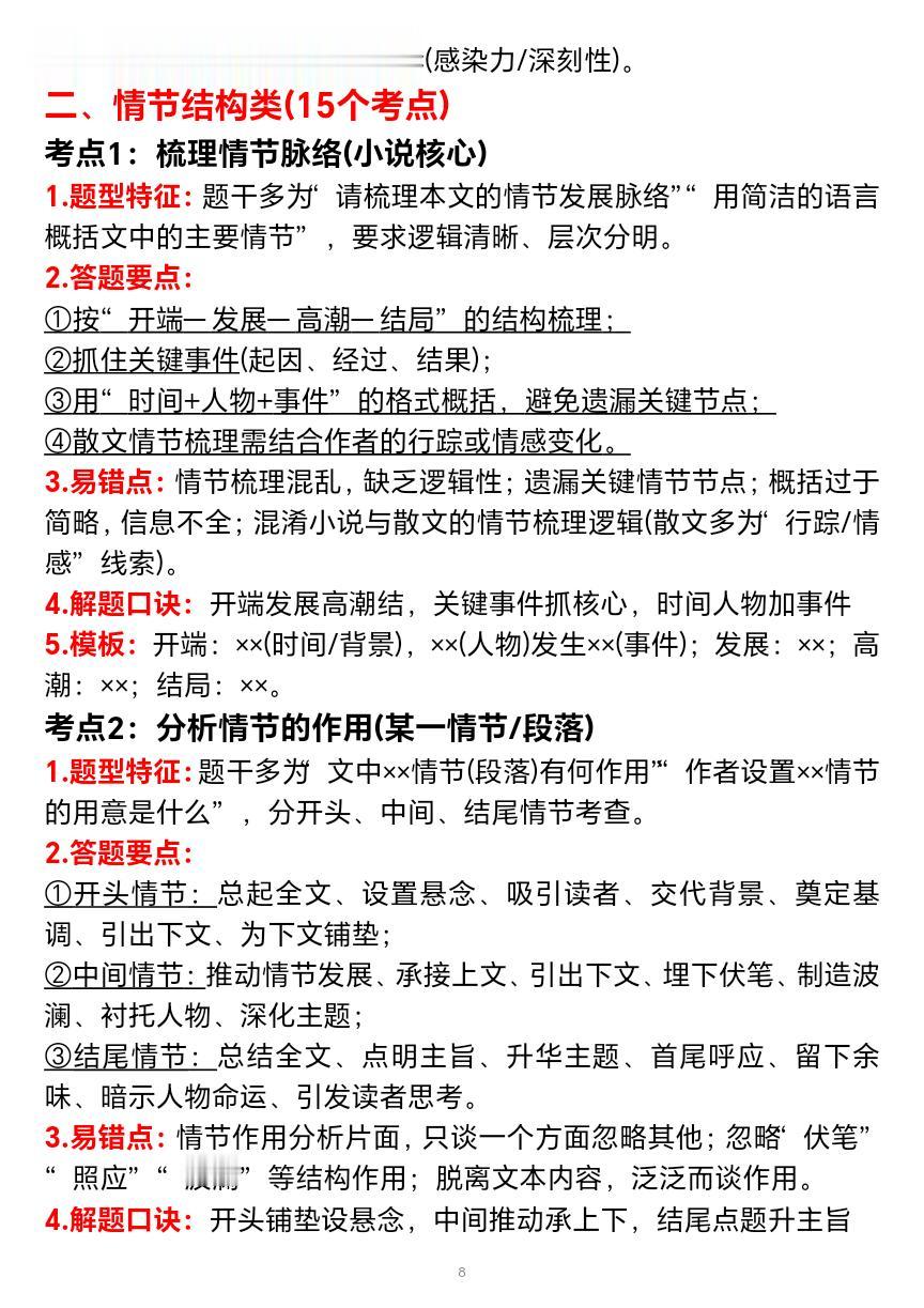 语文小说阅读理解答题模板分享。语文小说阅读理解答题模板分享