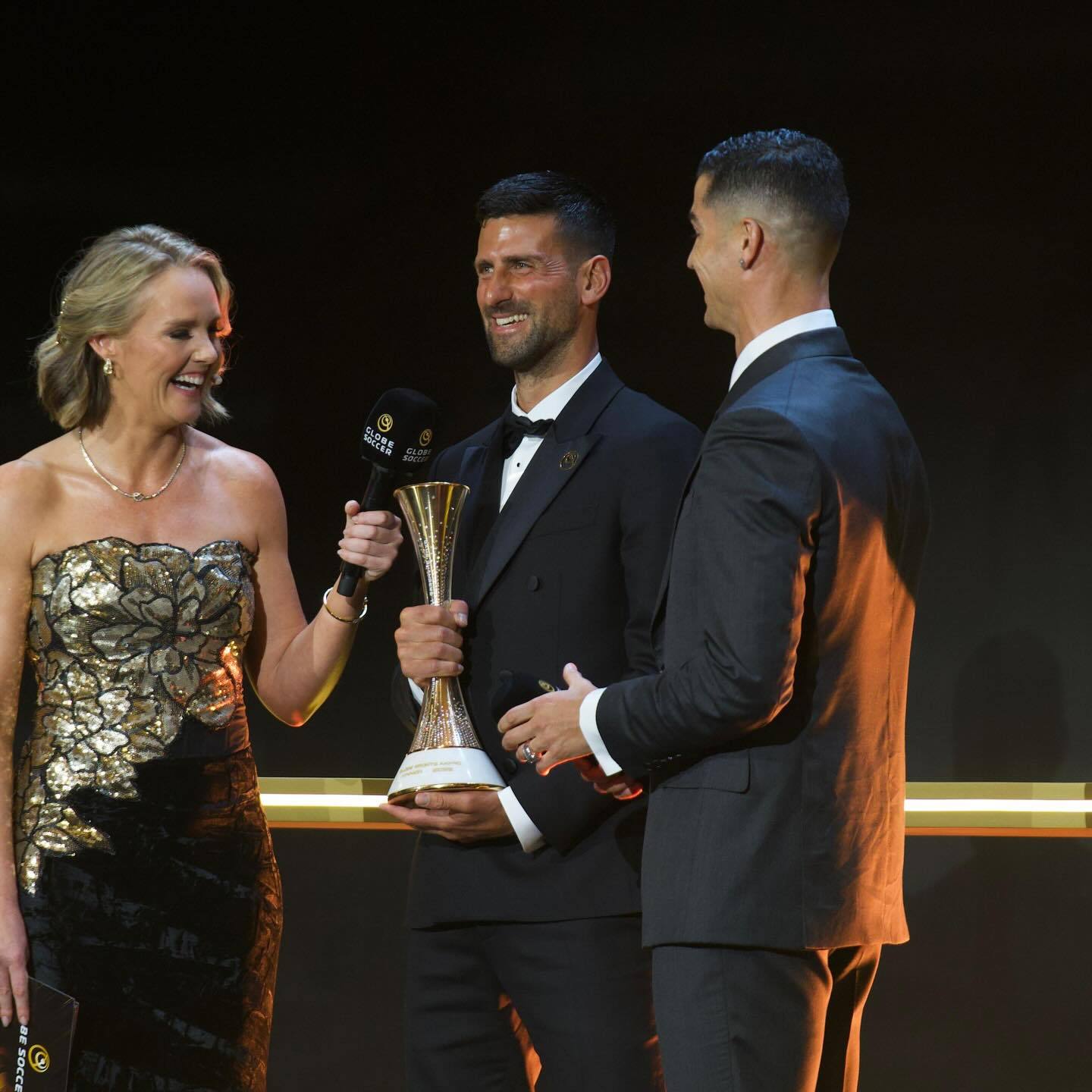 #C罗为德约科维奇颁奖#2025年环球足球奖颁奖典礼举行,网坛名将德约科维奇荣膺首届2025环球体育奖,C罗担任颁奖嘉宾“环球体育奖”旨在表彰那些超越赛场、让整个世界为之屏息的传奇人物。德约科维奇不断突破人类潜能极限,他是一位真正的变革者,不仅是冠军更是永恒的传奇#德约荣膺环球体育奖##德约科维奇#