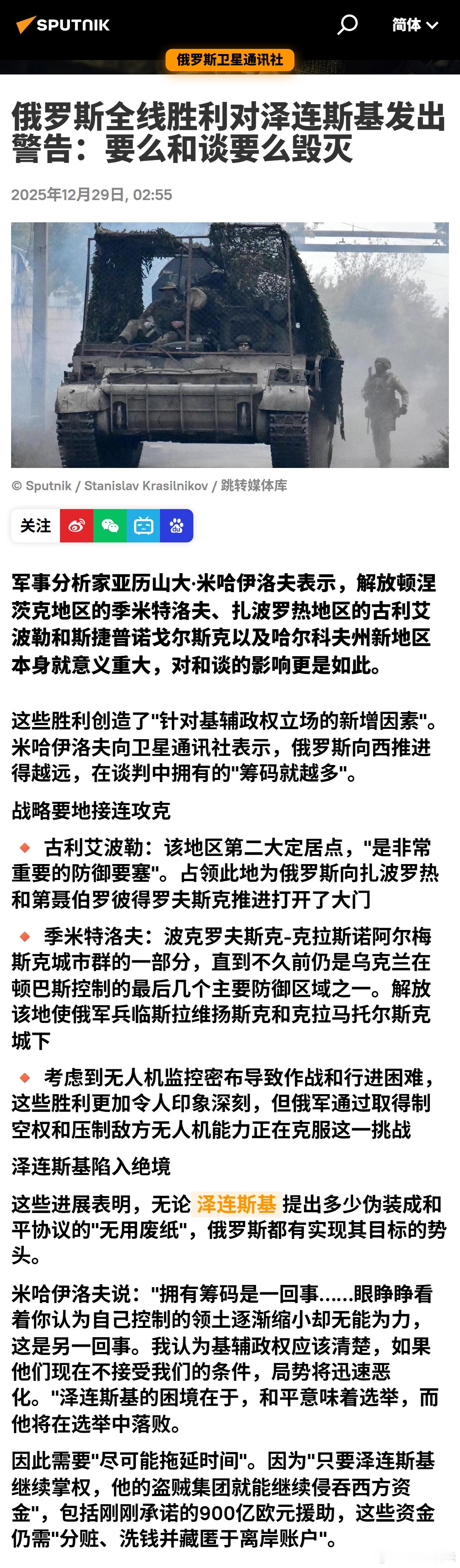 俄罗斯全线胜利对泽连斯基发出警告:要么和谈要么毁灭